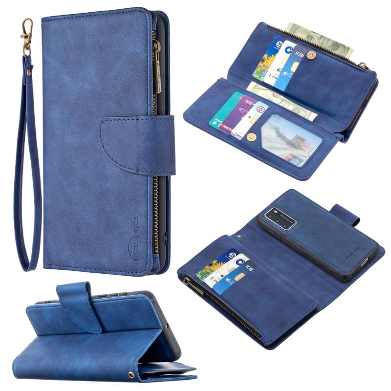 For Huawei P40 Skin Feel Detachable Magnetic Zipper Horizontal Flip PU Leather Case with Multi-Card Slots & Holder & Wallet & Photo Frame & Lanyard(Blue)
