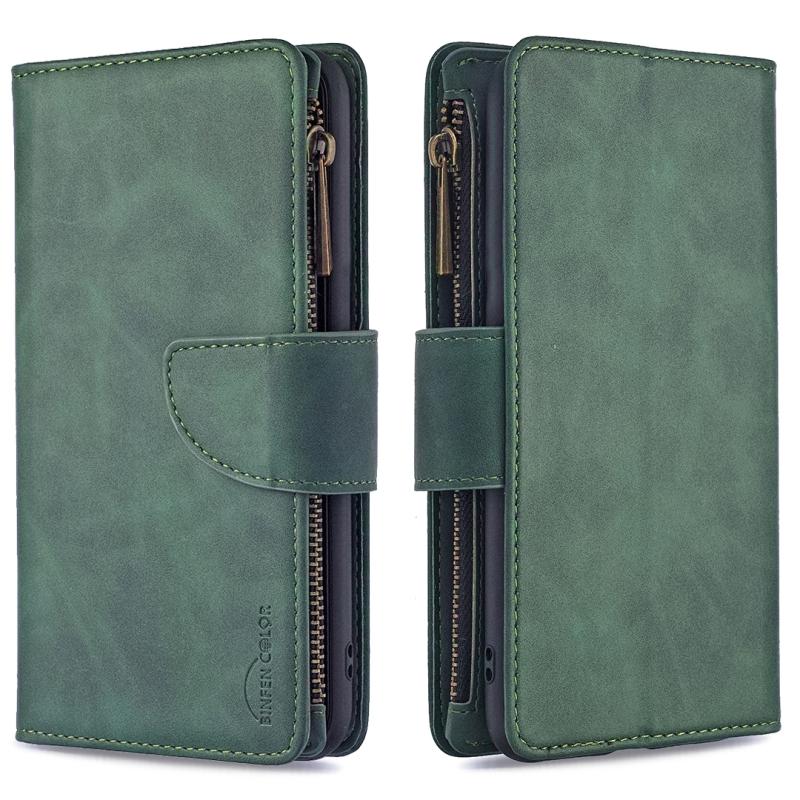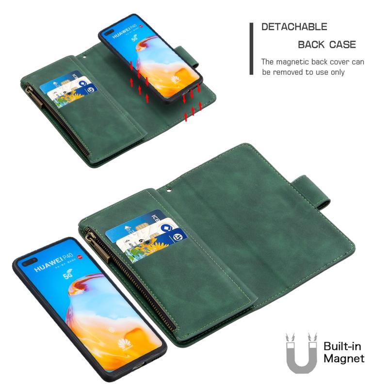 For Huawei P40 Skin Feel Detachable Magnetic Zipper Horizontal Flip PU Leather Case with Multi-Card Slots & Holder & Wallet & Photo Frame & Lanyard(Green)
