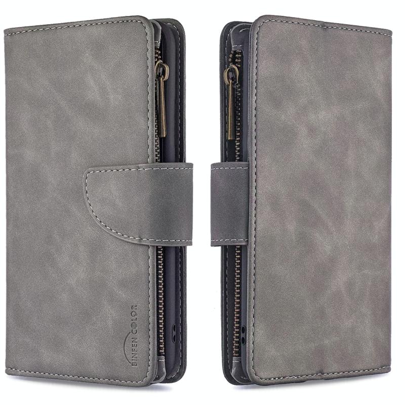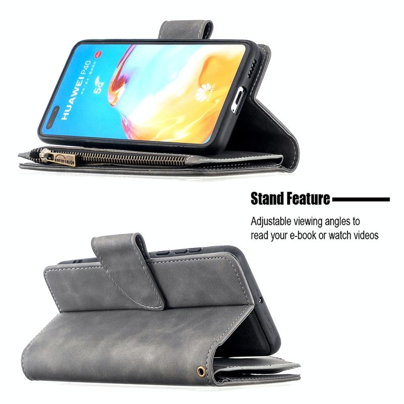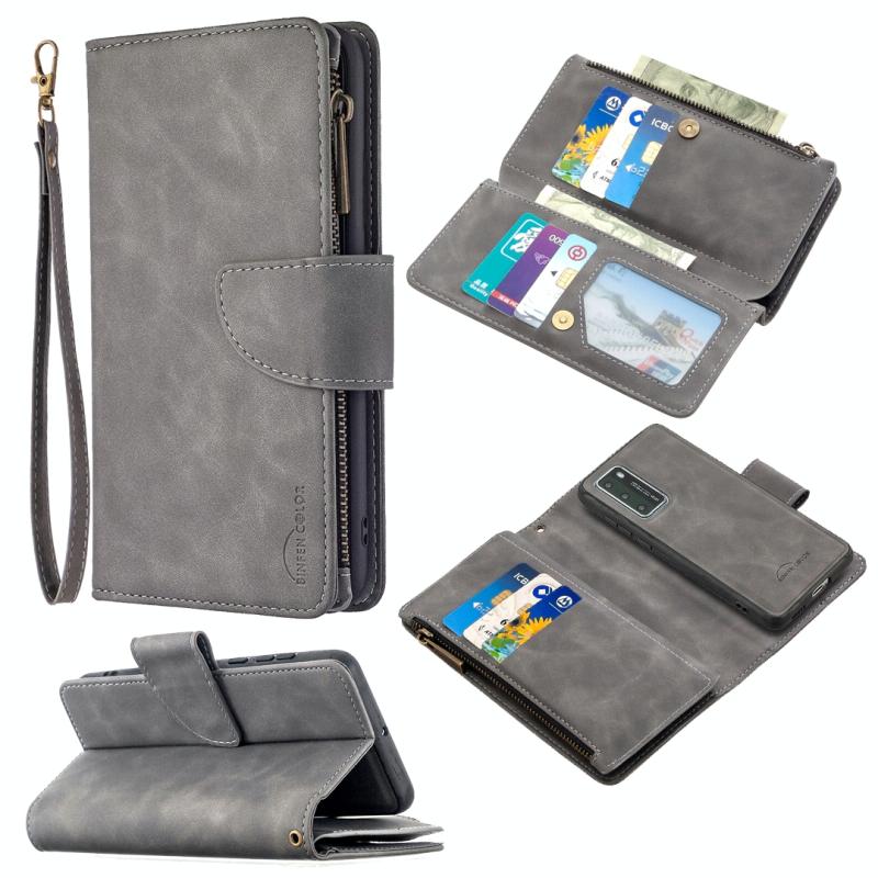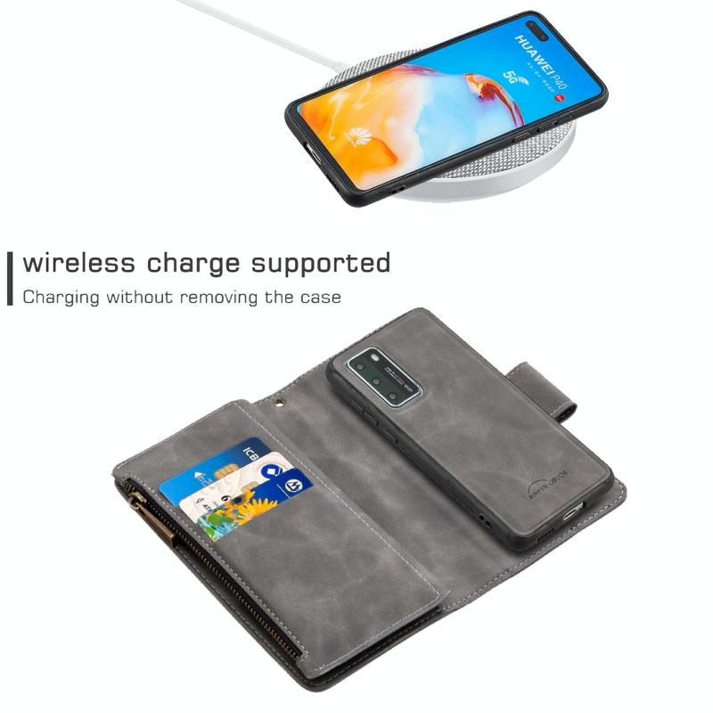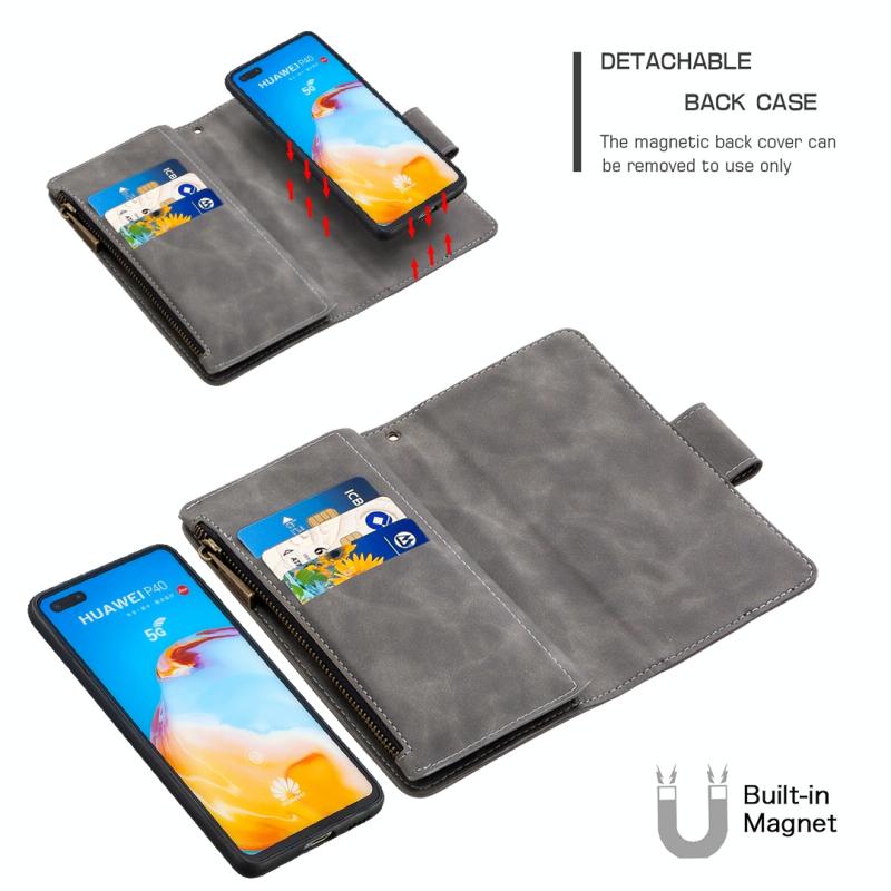 For Huawei P40 Skin Feel Detachable Magnetic Zipper Horizontal Flip PU Leather Case with Multi-Card Slots & Holder & Wallet & Photo Frame & Lanyard(Grey)