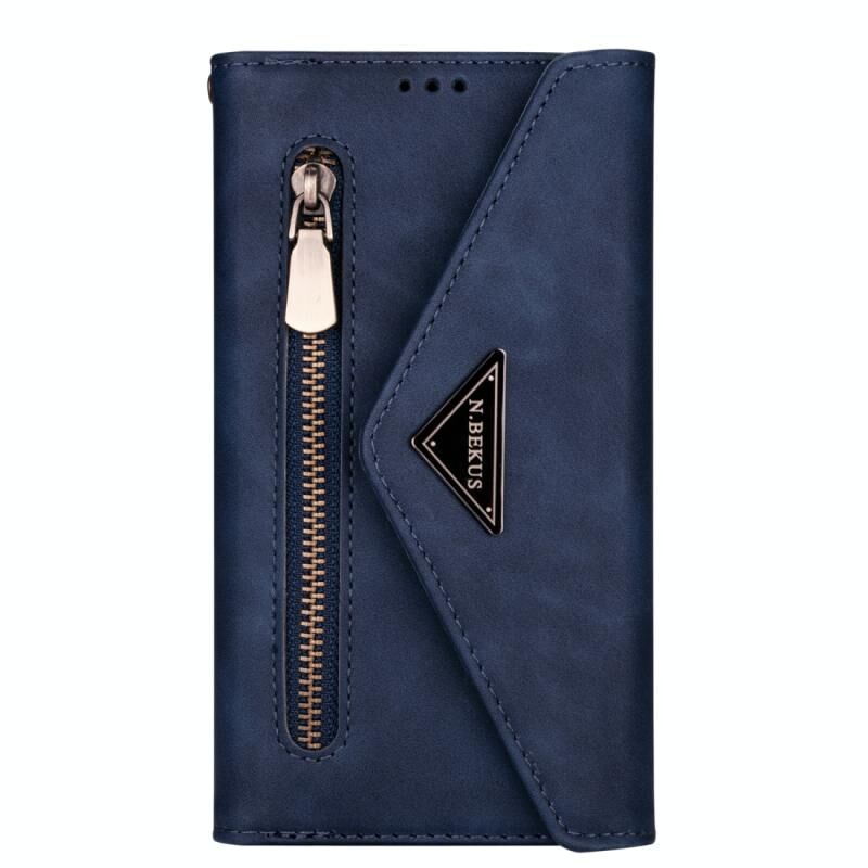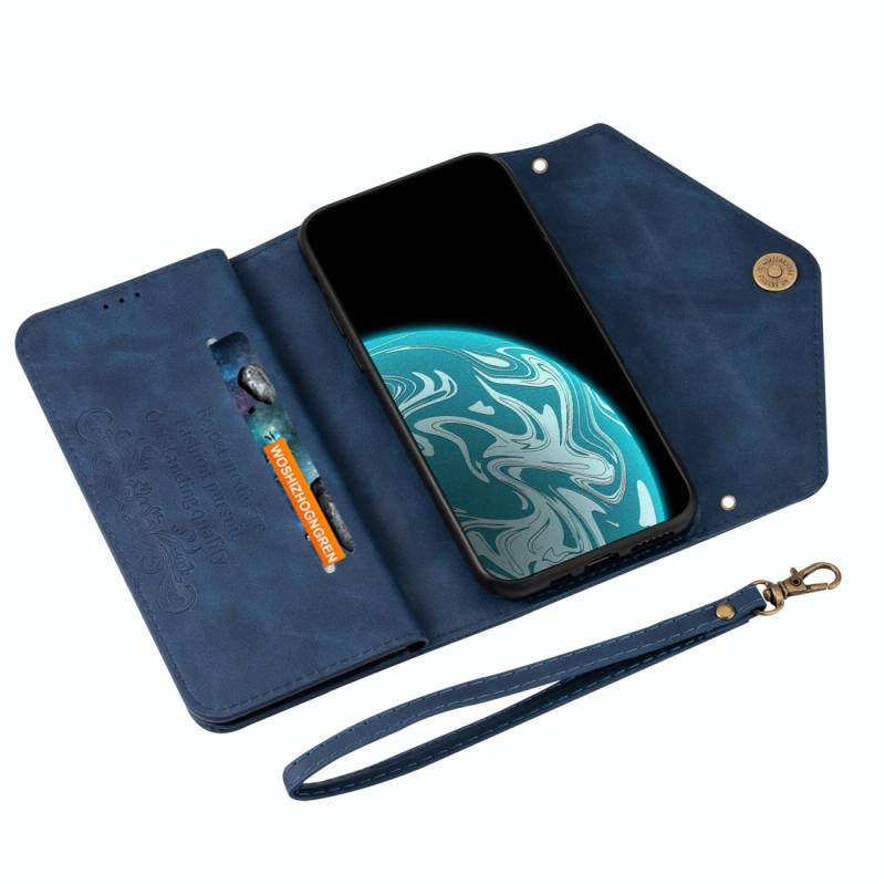 For Huawei P40 Skin Feel Zipper Horizontal Flip Leather Case with Holder & Card Slots & Photo Frame & Lanyard & Long Rope(Blue)