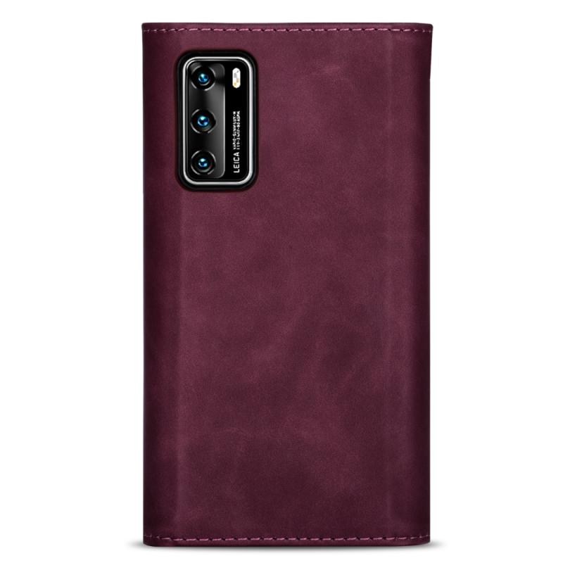 For Huawei P40 Skin Feel Zipper Horizontal Flip Leather Case with Holder & Card Slots & Photo Frame & Lanyard & Long Rope(Wine Red)