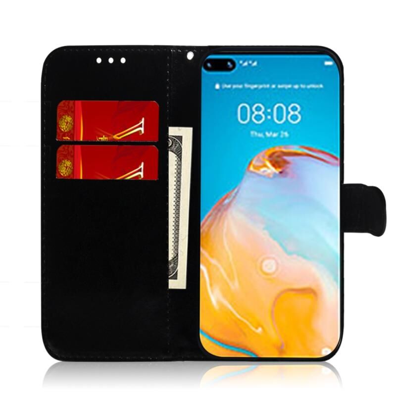 Θήκη για Huawei P40, μονόχρωμη, πολύχρωμη, με μαγνητικό κούμπωμα, οριζόντια, από δερματίνη PU, με βάση στήριξης, θήκες για κάρτες, πορτοφόλι & λουρί (Μαύρο)