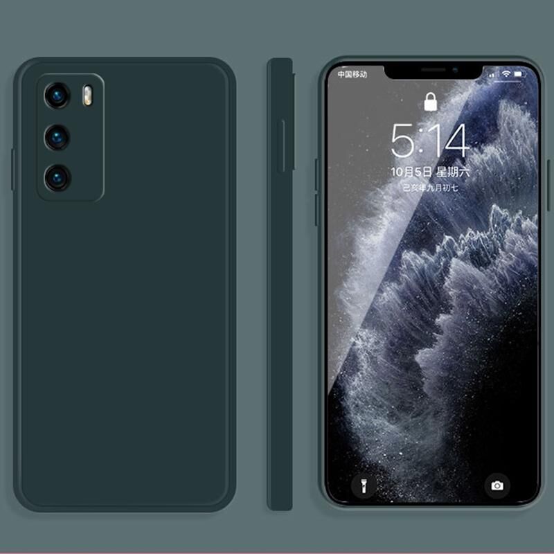Για το Huawei P40 Solid Color Imitation Liquid Silicone Straight Edge Dropproof Full Coverage Protective Case (Dark Green)