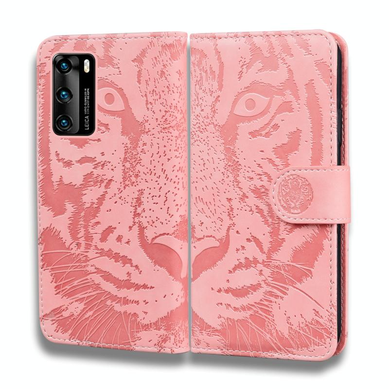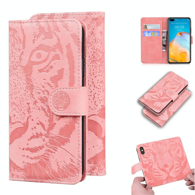 For Huawei P40 Tiger Embossing Pattern Horizontal Flip Leather Case with Holder & Card Slots & Wallet(Pink)