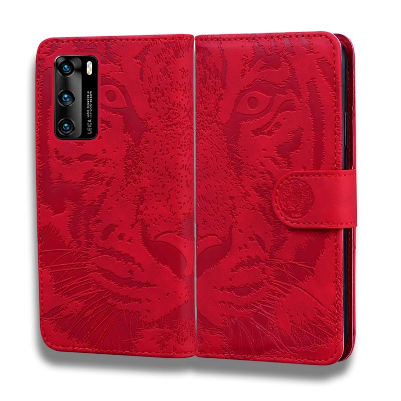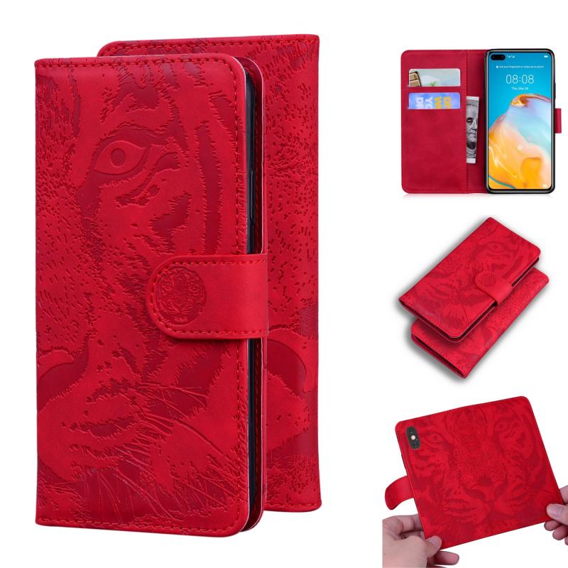 For Huawei P40 Tiger Embossing Pattern Horizontal Flip Leather Case with Holder & Card Slots & Wallet(Red)