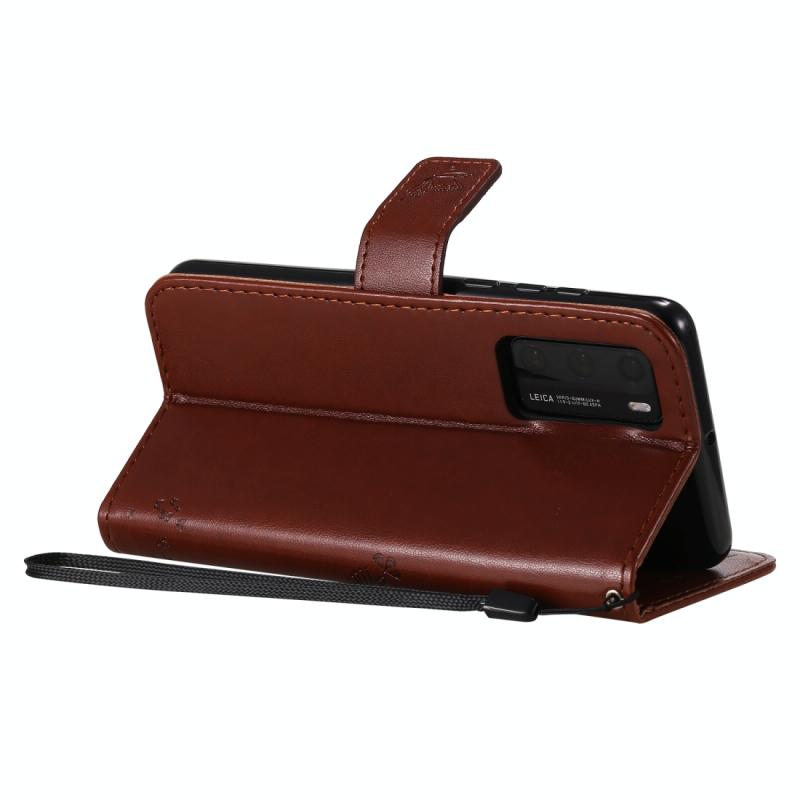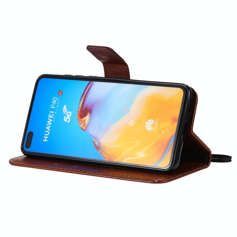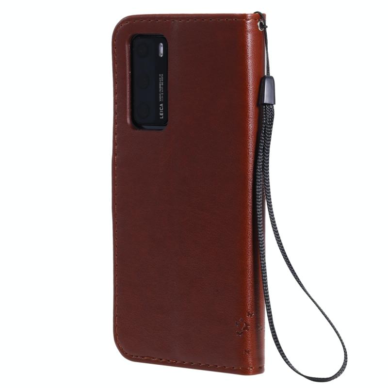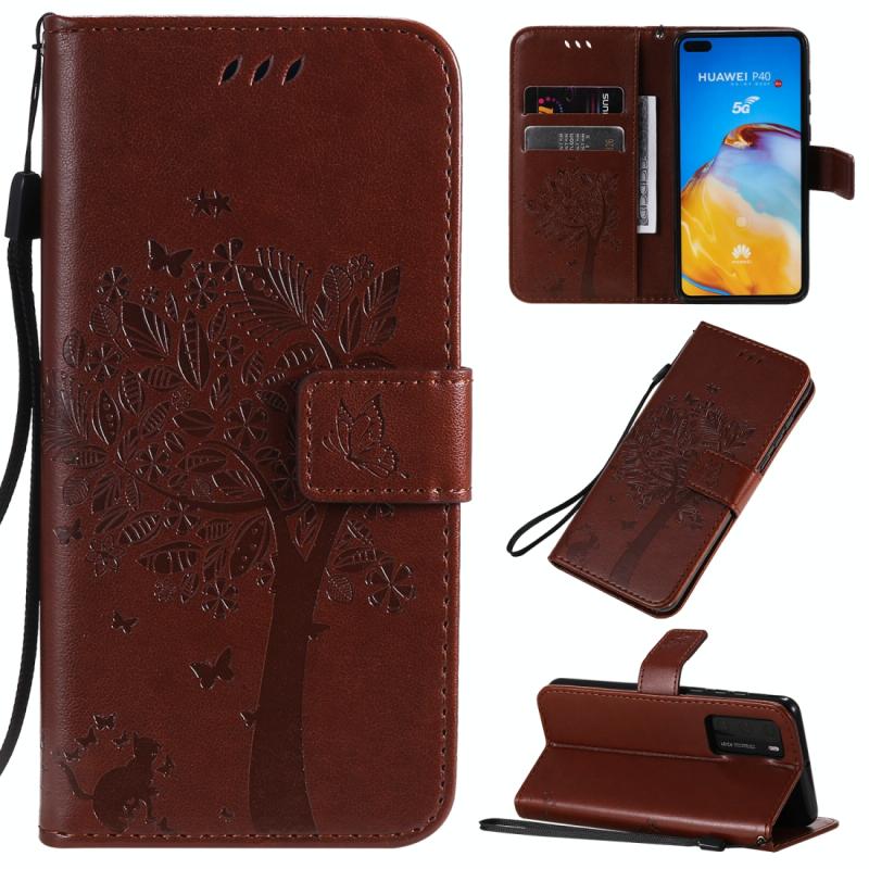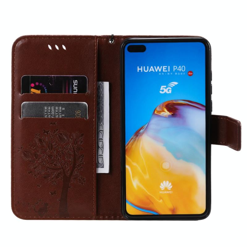 Θήκη για Huawei P40 με σχέδιο δέντρου & γάτας, με εκτύπωση υπό πίεση, οριζόντια αναδίπλωση, από δερματίνη PU με βάση στήριξης & θήκες για κάρτες & πορτοφόλι & κορδόνι (Πράσινο)