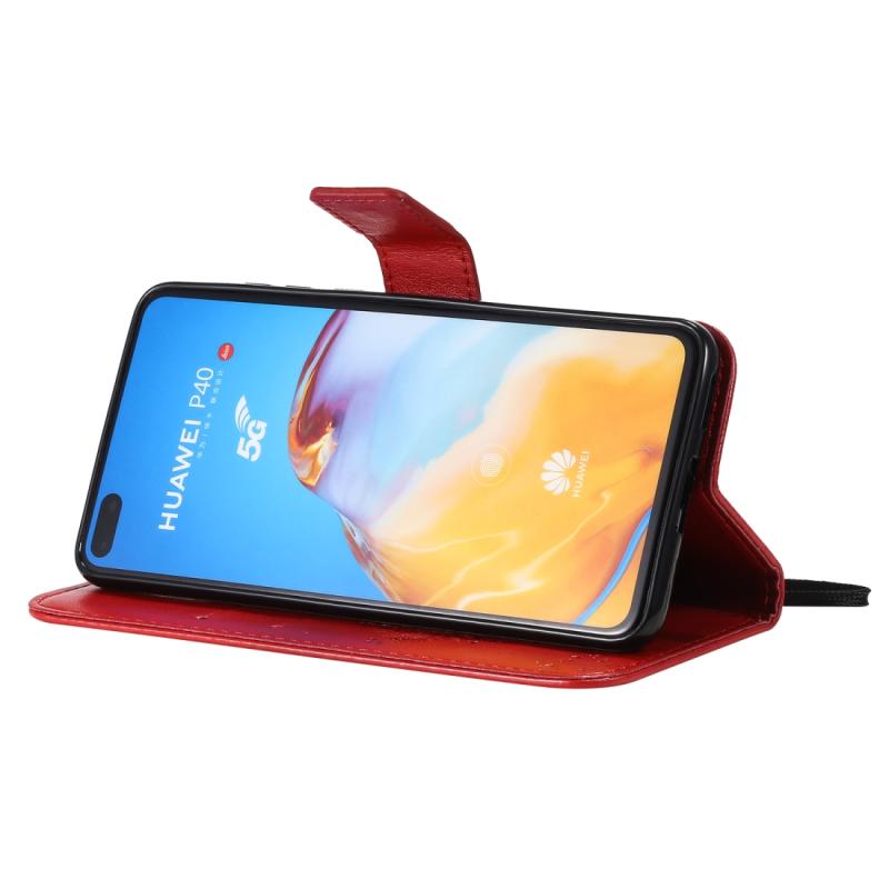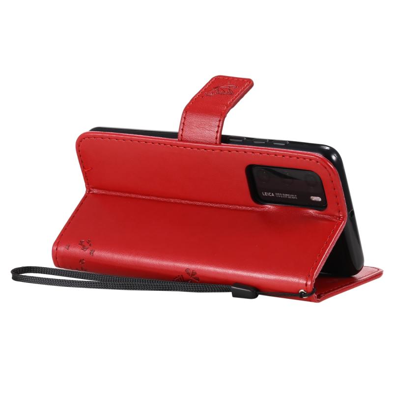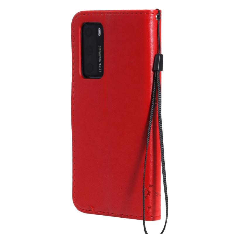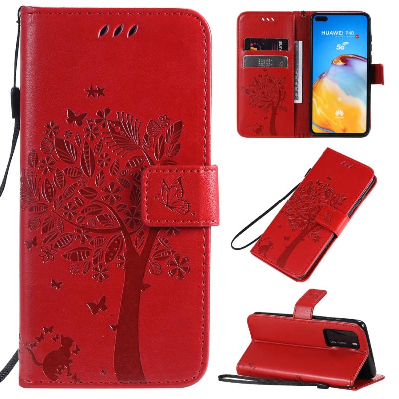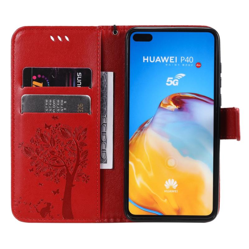 Θήκη για Huawei P40 με σχέδιο δέντρου & γάτας, με εκτύπωση υπό πίεση, οριζόντια αναδίπλωση, από δερματίνη PU με βάση στήριξης & θήκες για κάρτες & πορτοφόλι & κορδόνι (Πράσινο)