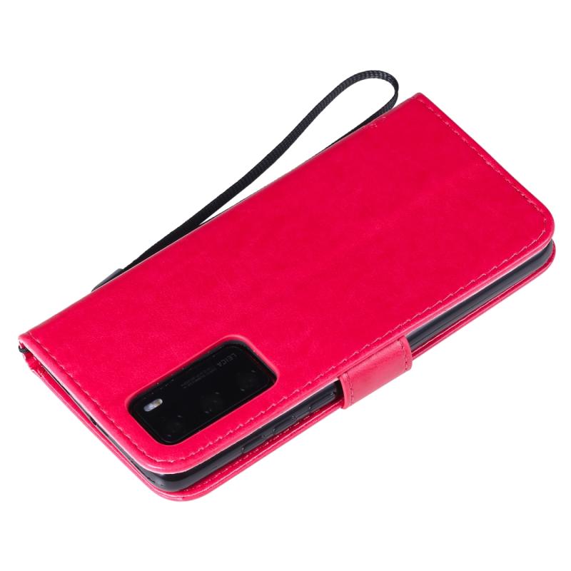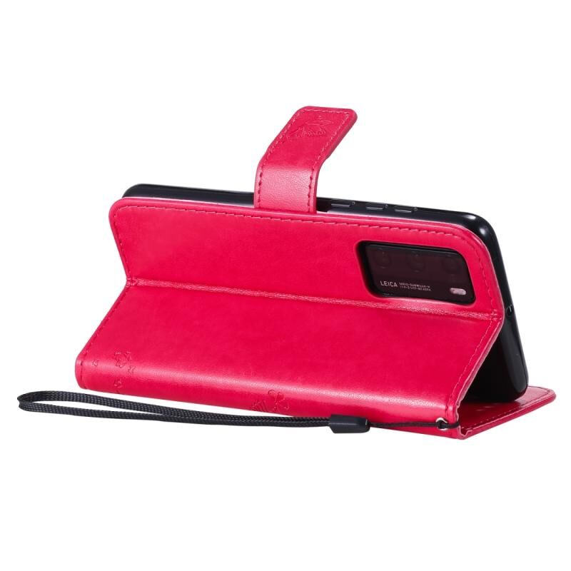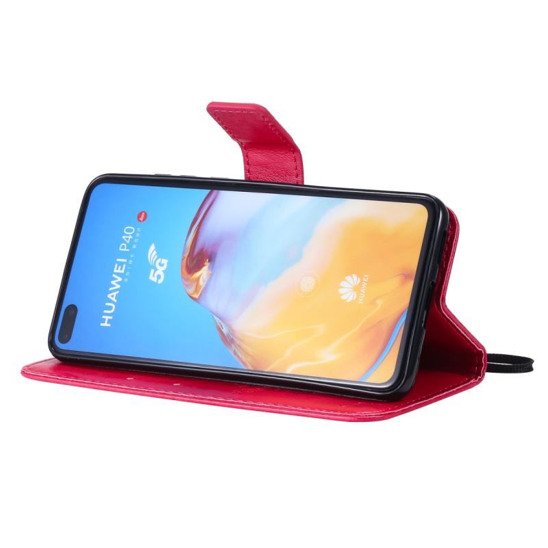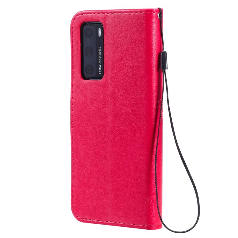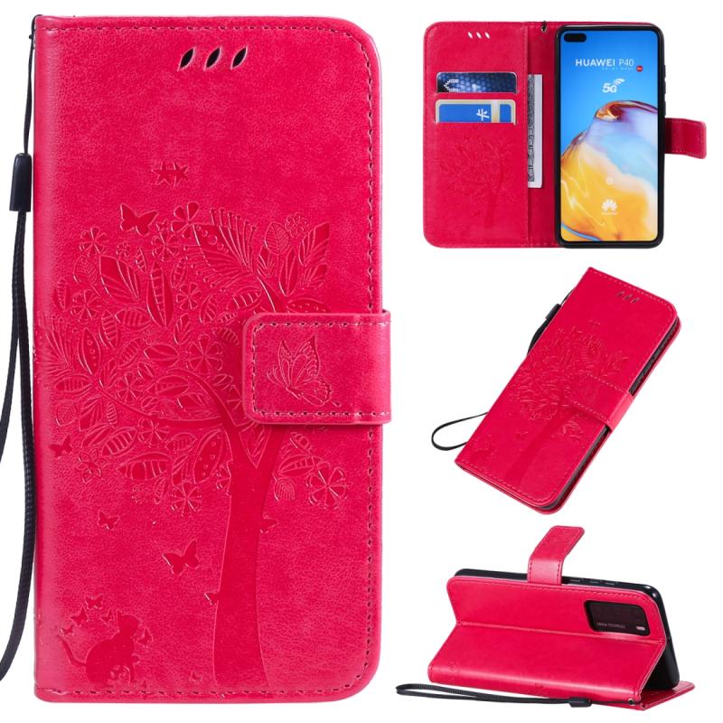 Θήκη για Huawei P40 με σχέδιο δέντρου & γάτας, με εκτύπωση υπό πίεση, οριζόντια αναδίπλωση, από δερματίνη PU με βάση στήριξης & θήκες για κάρτες & πορτοφόλι & κορδόνι (Πράσινο)