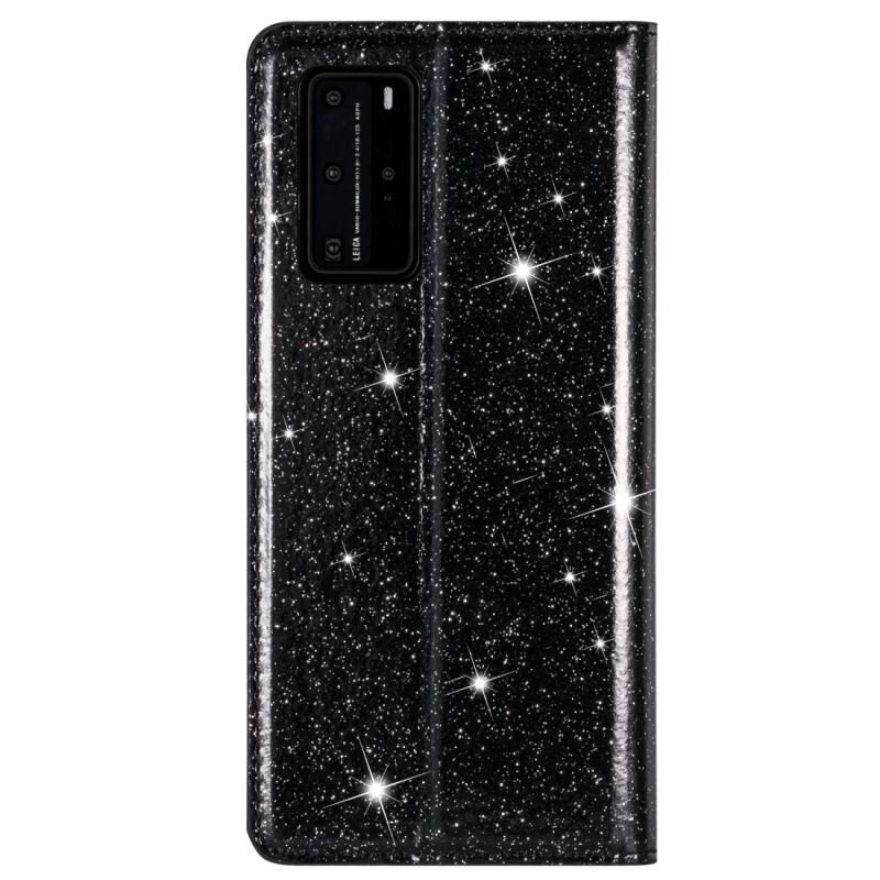 Για Huawei P40 Ultrathin Glitter μαγνητική οριζόντια Flip δερμάτινη θήκη με θήκη & υποδοχές καρτών (μαύρο)