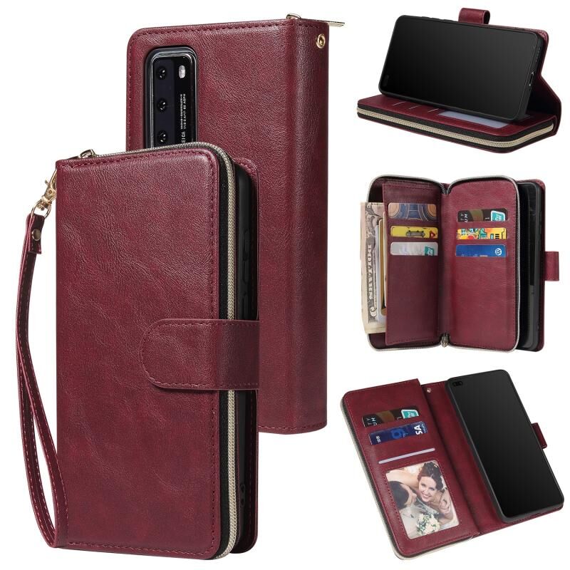 Για Huawei P40 φερμουάρ τσάντα πορτοφόλι οριζόντια Flip PU δέρμα υπόθεση με κάτοχο & 9 υποδοχές για κάρτες & πορτοφόλι & κορδόνι & κορνίζα φωτογραφία (κόκκινο κρασί)