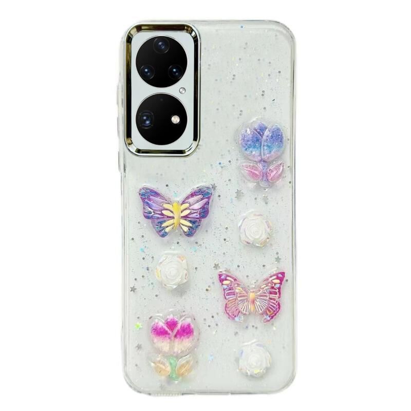 Θήκη τηλεφώνου Huawei P50 3D πολύχρωμη κρυστάλλινη πεταλούδα TPU (Λουλούδια Πεταλούδας)