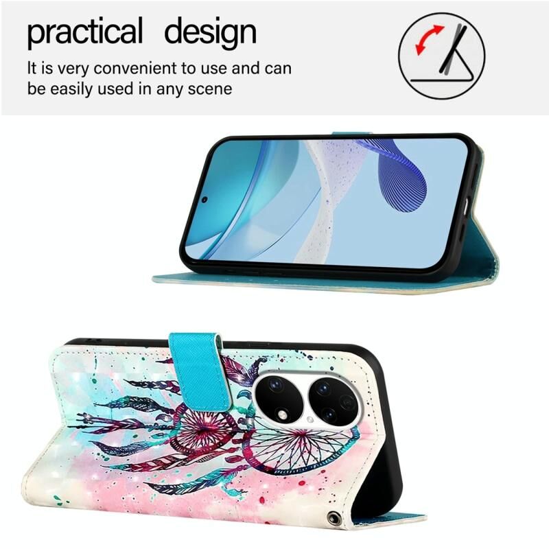 Θήκη τηλεφώνου από δέρμα με οριζόντια αναδίπλωση και τρισδιάστατη ζωγραφική για Huawei P50 (Χρώμα: Αέριες καμπάνες)