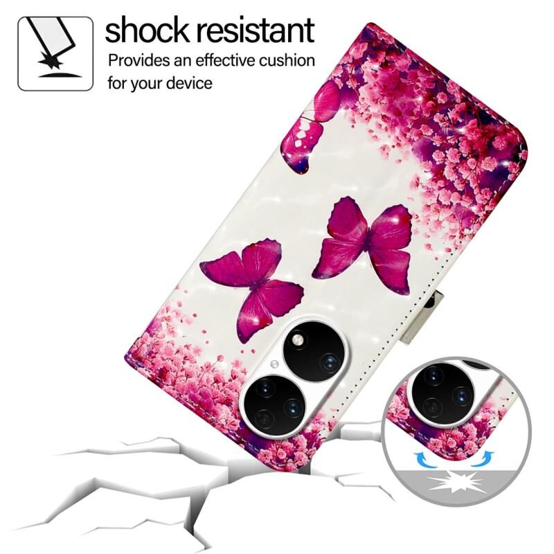 Θήκη τηλεφώνου από δέρμα με οριζόντια αναδίπλωση και τρισδιάστατη ζωγραφική για Huawei P50 (Ροζ Πεταλούδα)