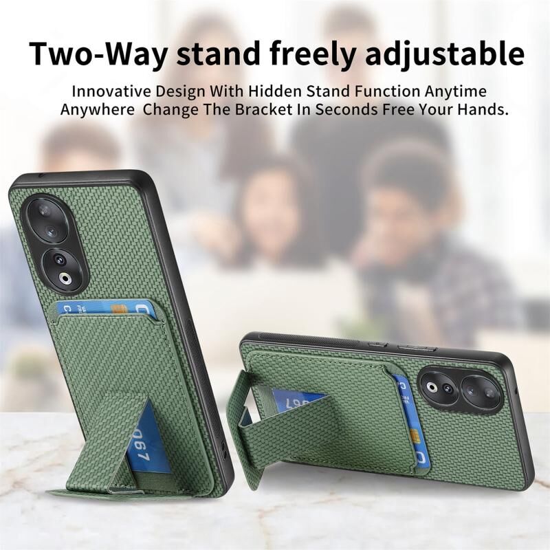 Θήκη τηλεφώνου για Huawei P50 από ανθρακονήματα με κάρτες και βάση στήριξης (πράσινο)