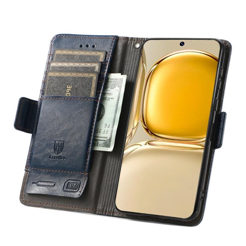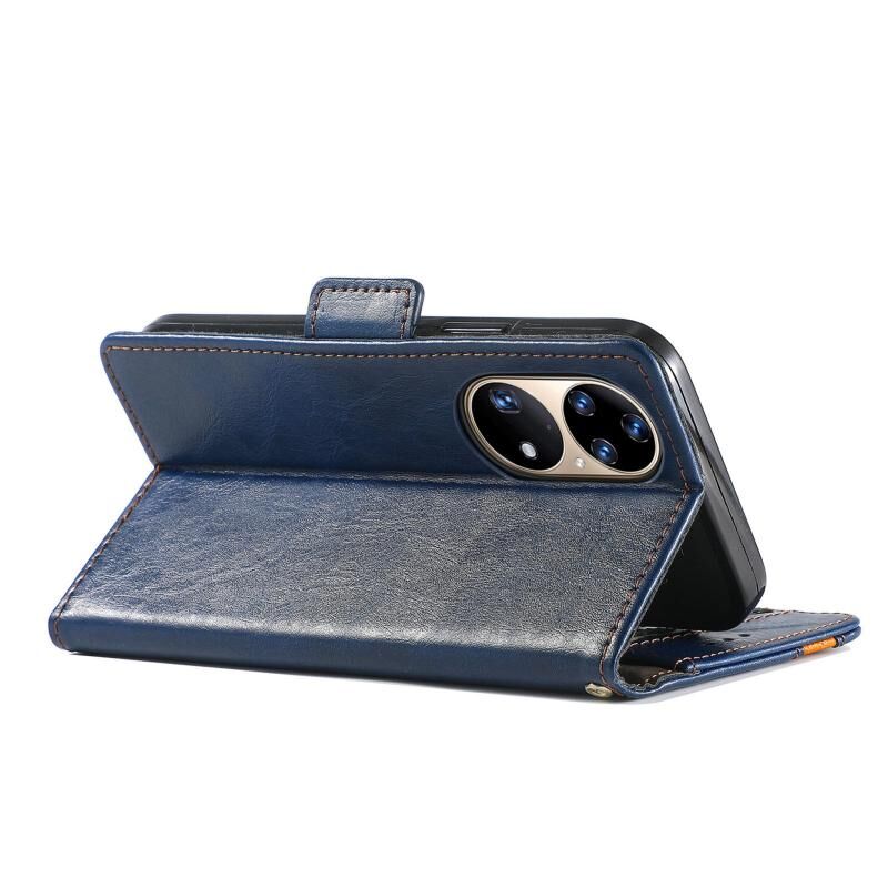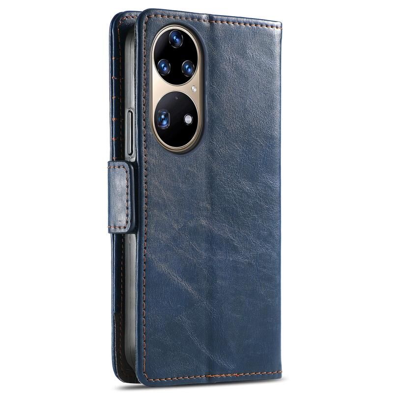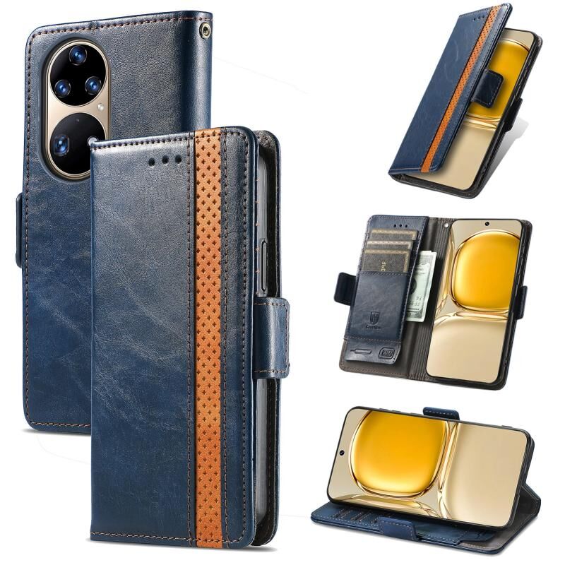 Για Huawei P50 CaseNeo Business Splicing Διπλή μαγνητική πόρπη οριζόντια Flip PU δερμάτινη θήκη με κάτοχο & υποδοχές καρτών & πορτοφόλι (μπλε)