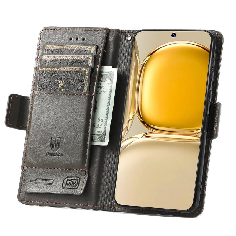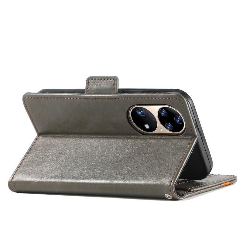 Για Huawei P50 CaseNeo Business Splicing Διπλή μαγνητική πόρπη οριζόντια Flip PU δερμάτινη θήκη με κάτοχο & υποδοχές καρτών & πορτοφόλι (γκρι)