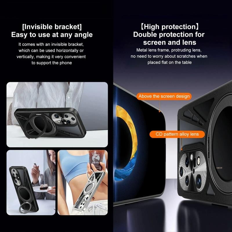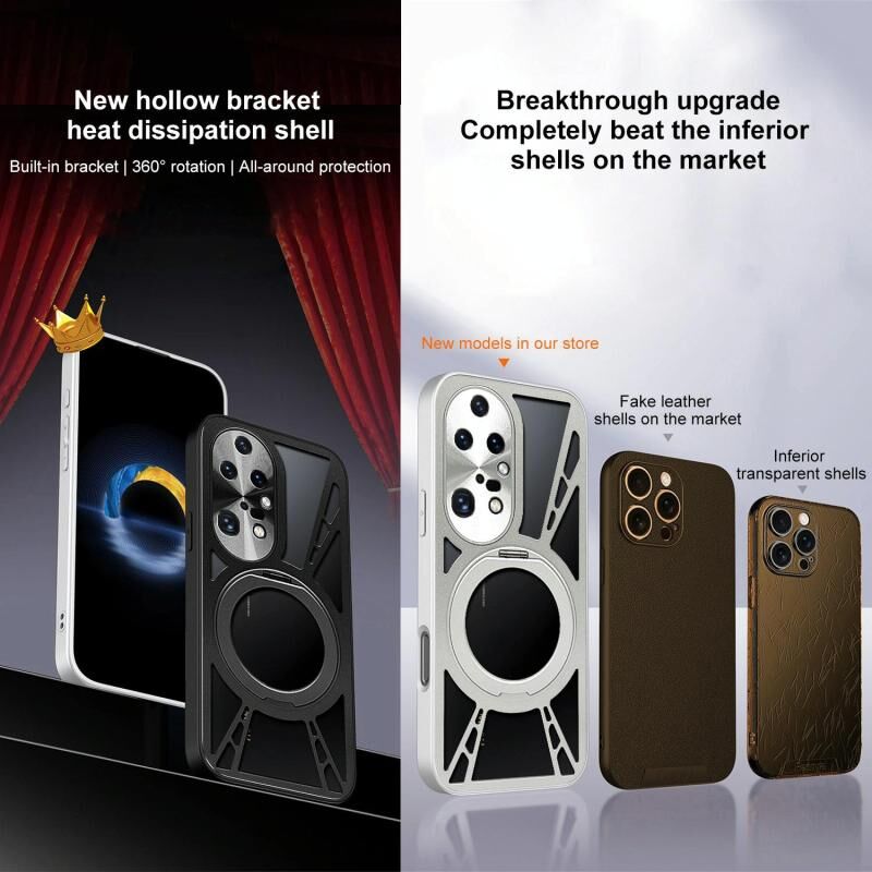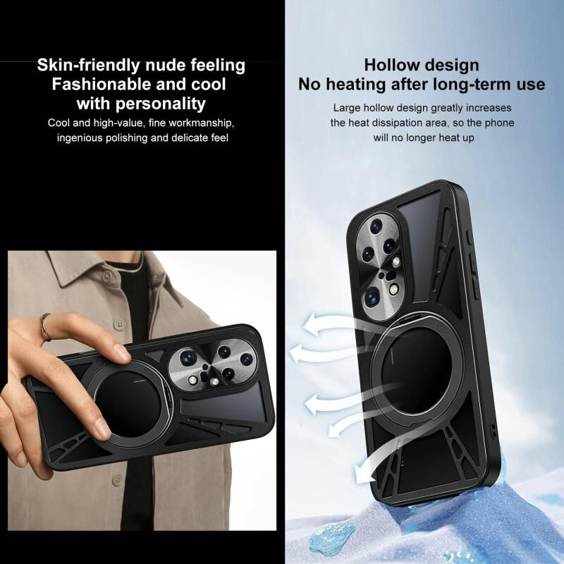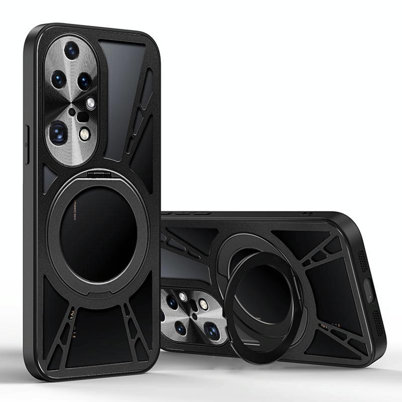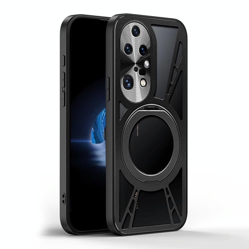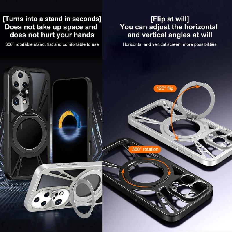 For Huawei P50 Cooling Hollow Metal Holder MagSafe Phone Case(Black)