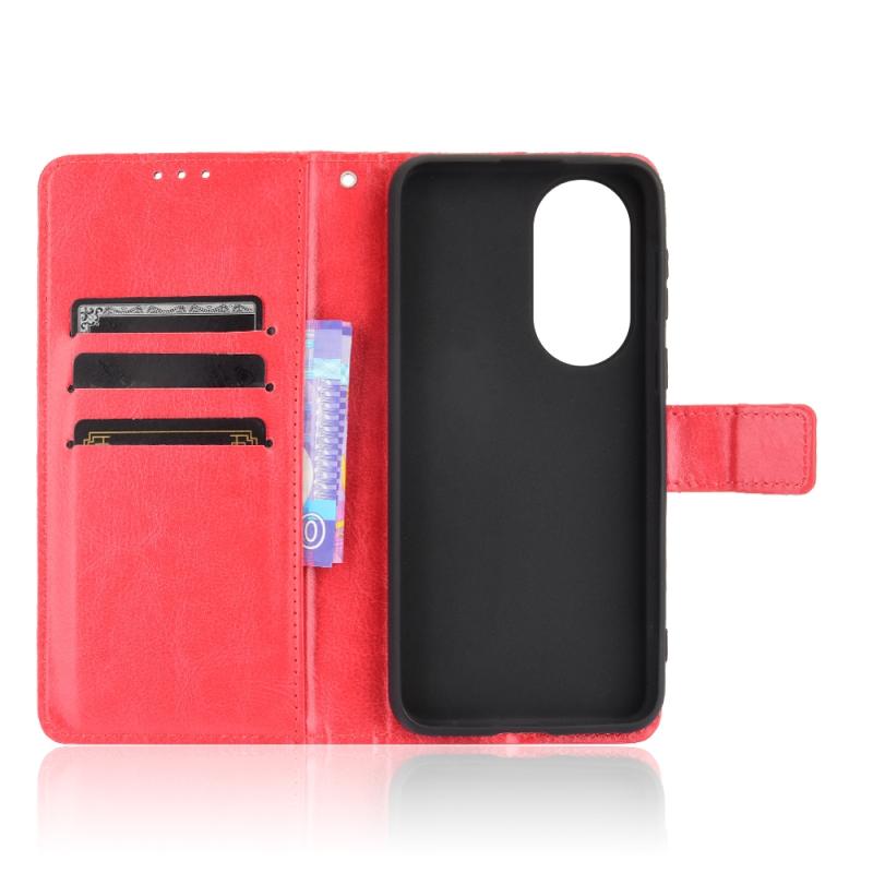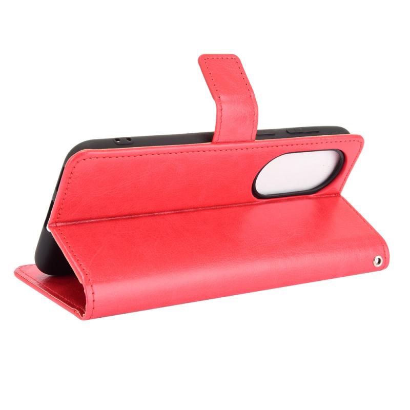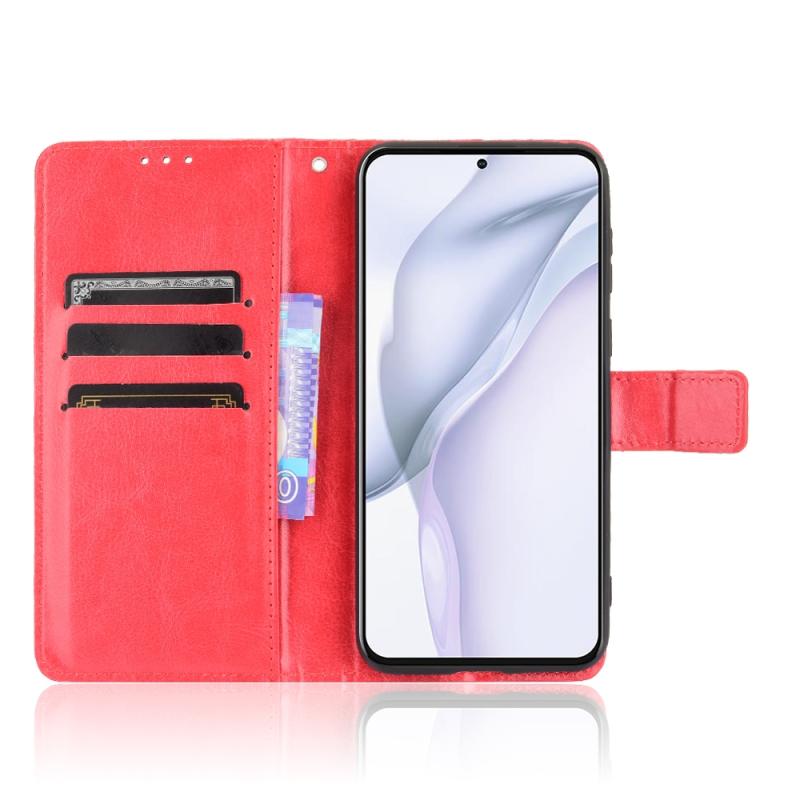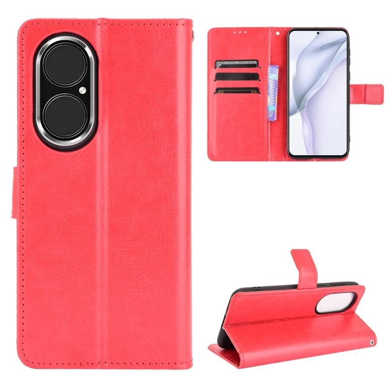 Θήκη δέρματος οριζόντιας αναδίπλωσης με υφή Crazy Horse για Huawei P50 με βάση στήριξης & υποδοχές καρτών & κορδόνι (Κόκκινο)