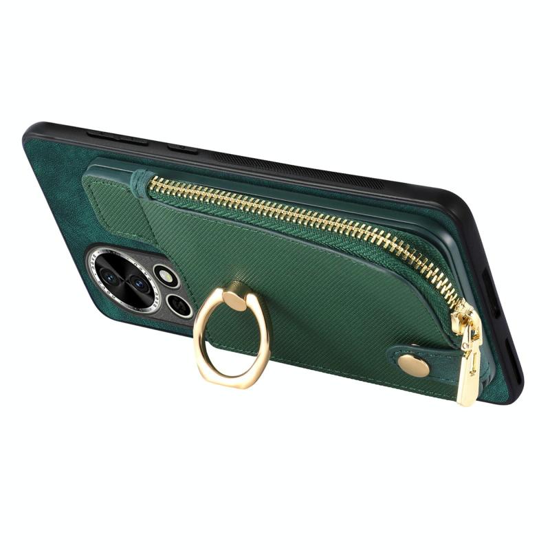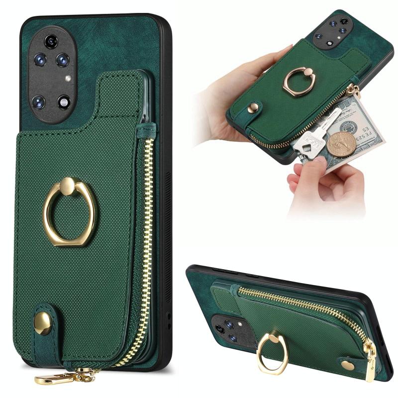 Θήκη Huawei P50 Cross Leather με Δαχτυλίδι & Κάθετο Φερμουάρ Πορτοφολιού (Πράσινο)