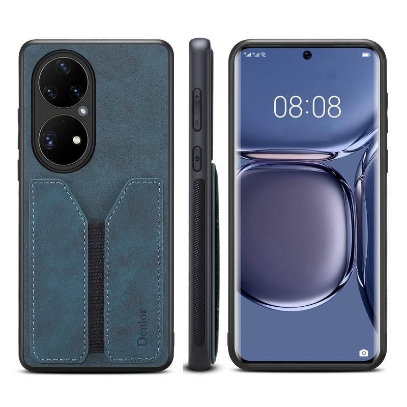 Για Huawei P50 Denior DV ελαστική κάρτα PU πίσω κάλυψη υπόθεση τηλεφώνου (μπλε) (Μπλε)