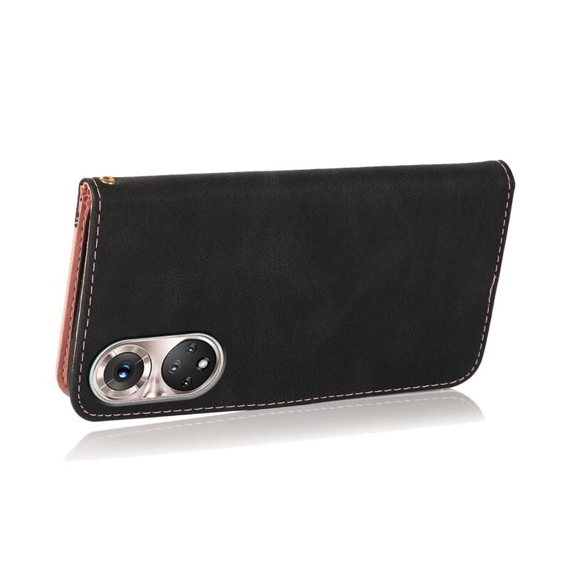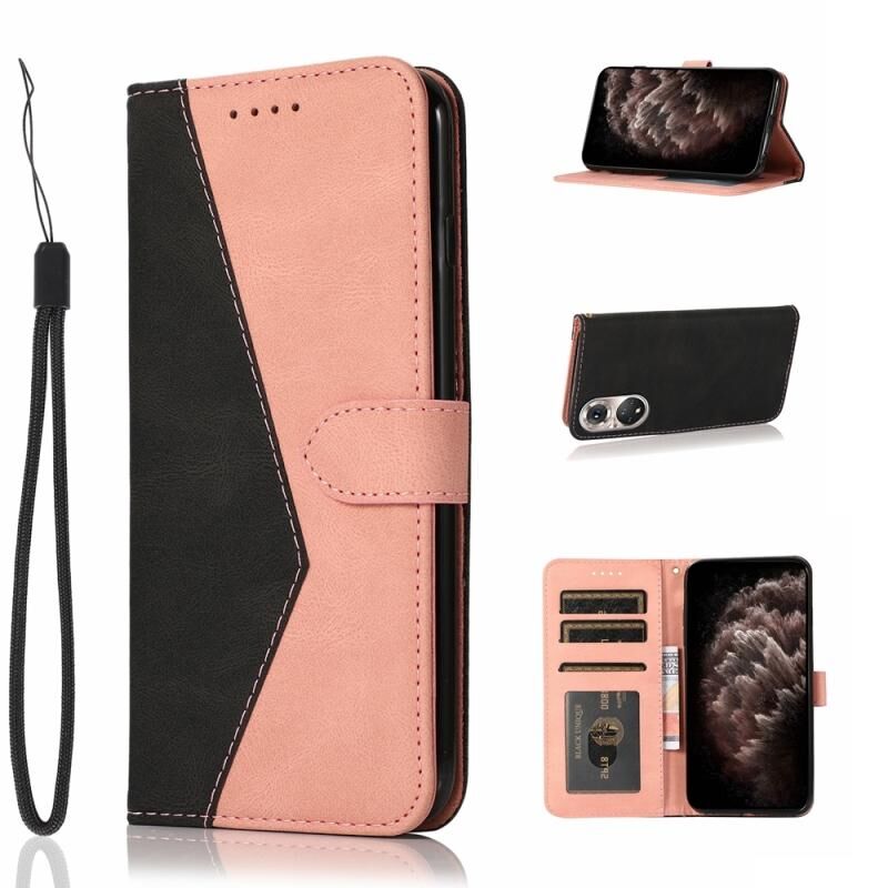 Για Huawei P50 Διπλό χρώμα ραφή δερμάτινη θήκη τηλεφώνου (μαύρο ροζ χρυσό)