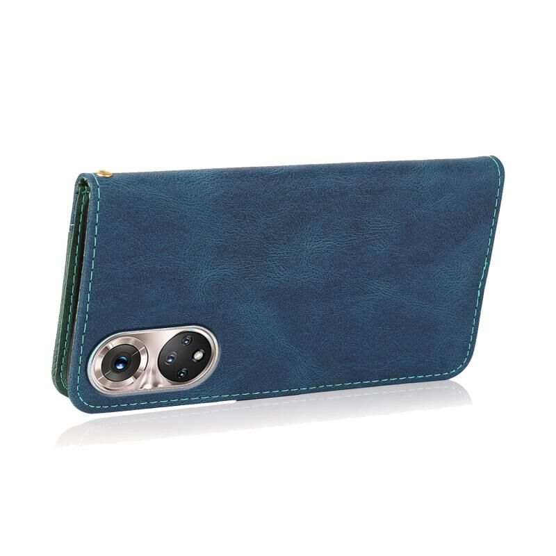 Για Huawei P50 Διπλό χρώμα ραφή δέρμα τηλέφωνο υπόθεση (μπλε πράσινο)