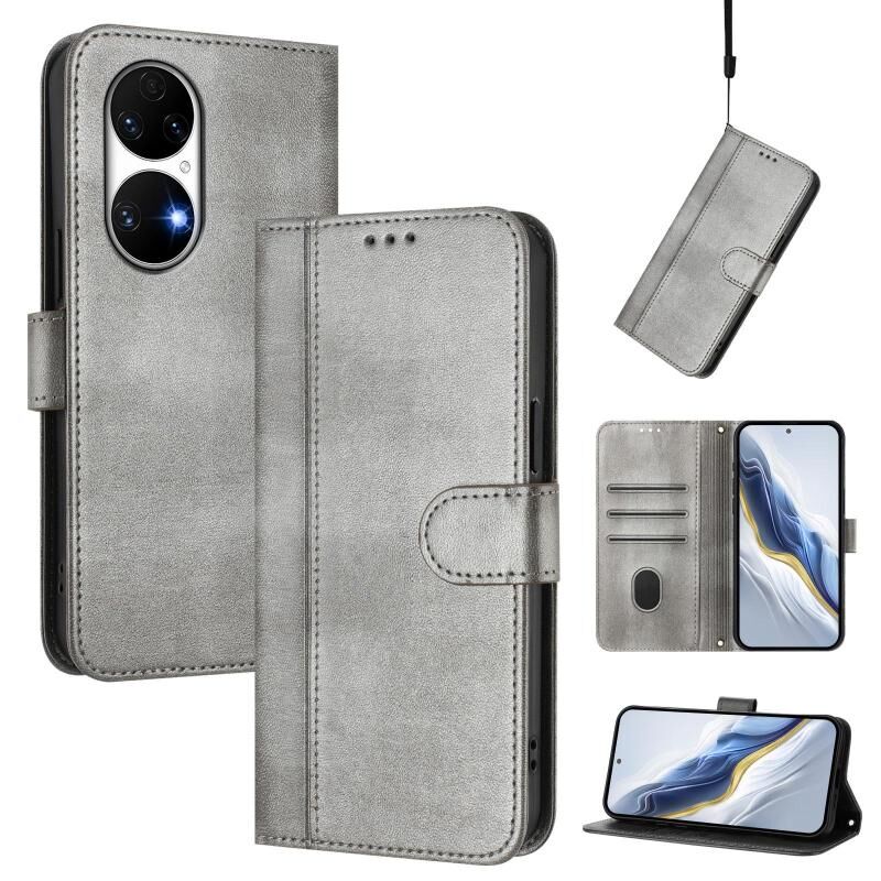 Θήκη τηλεφώνου Huawei P50 Line Splicing Buckle Retro Leather (Μέντα Πράσινο)