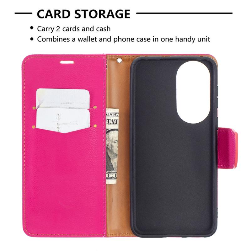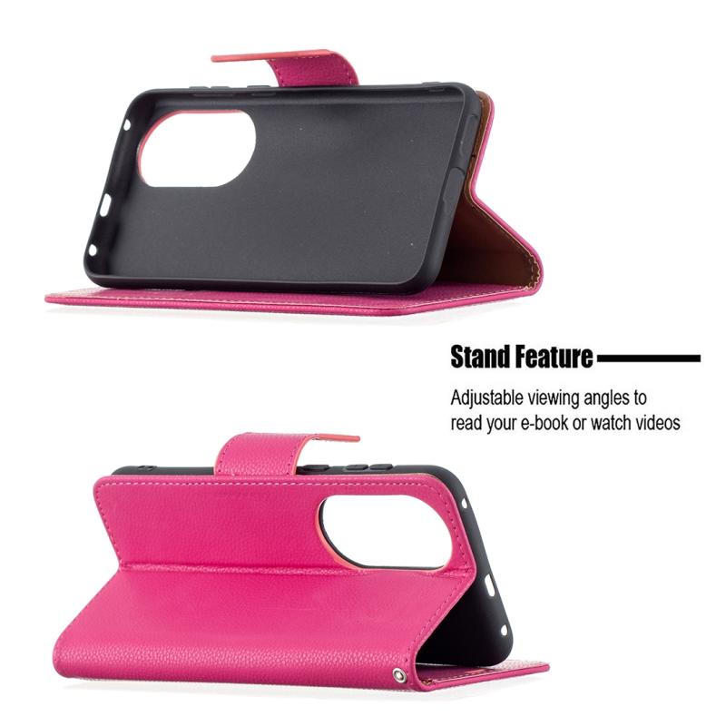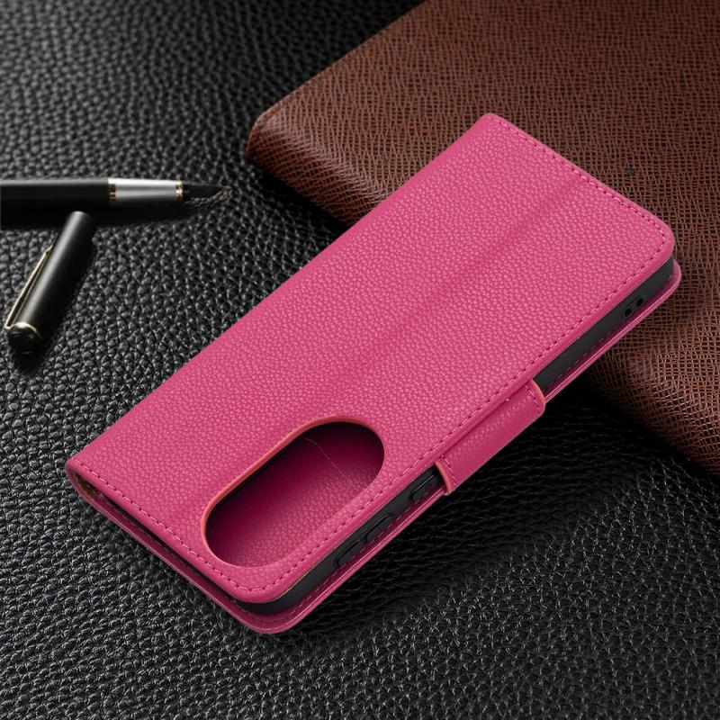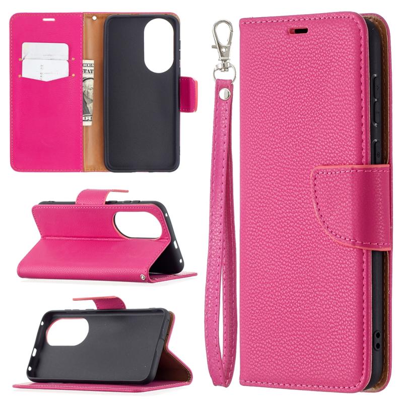 Θήκη δέρματος οριζόντιας αναδίπλωσης με υφή Λίτσι για Huawei P50, καθαρό χρώμα, με βάση στήριξης, θήκες καρτών, πορτοφόλι & λουρί (Γκρι)
