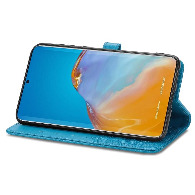 Για Huawei P50 Mandala λουλούδι ανάγλυφο οριζόντια Flip δερμάτινη θήκη με βραχίονα / υποδοχή κάρτας / πορτοφόλι / κορδόνι (μπλε)
