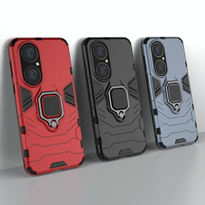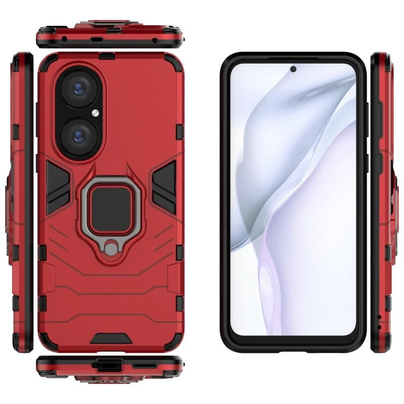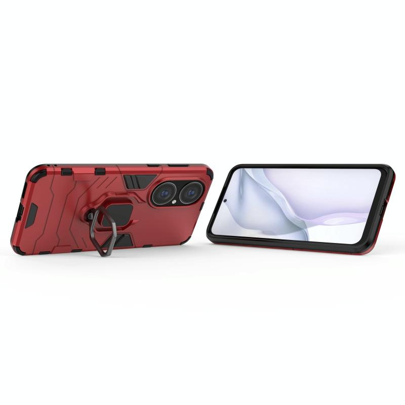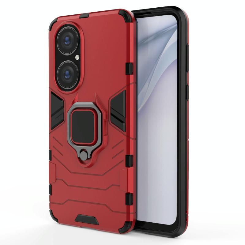 For Huawei P50 PC + TPU Shockproof Protective Case with Magnetic Ring Holder(Red)