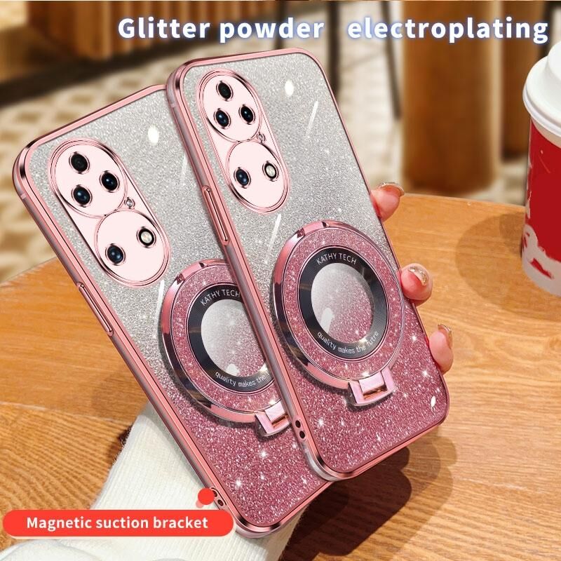 Για Huawei P50 Επιμεταλλωμένο διαβάθμιση Glitter Γύρος κάτοχος TPU τηλέφωνο υπόθεση (ρόζ)
