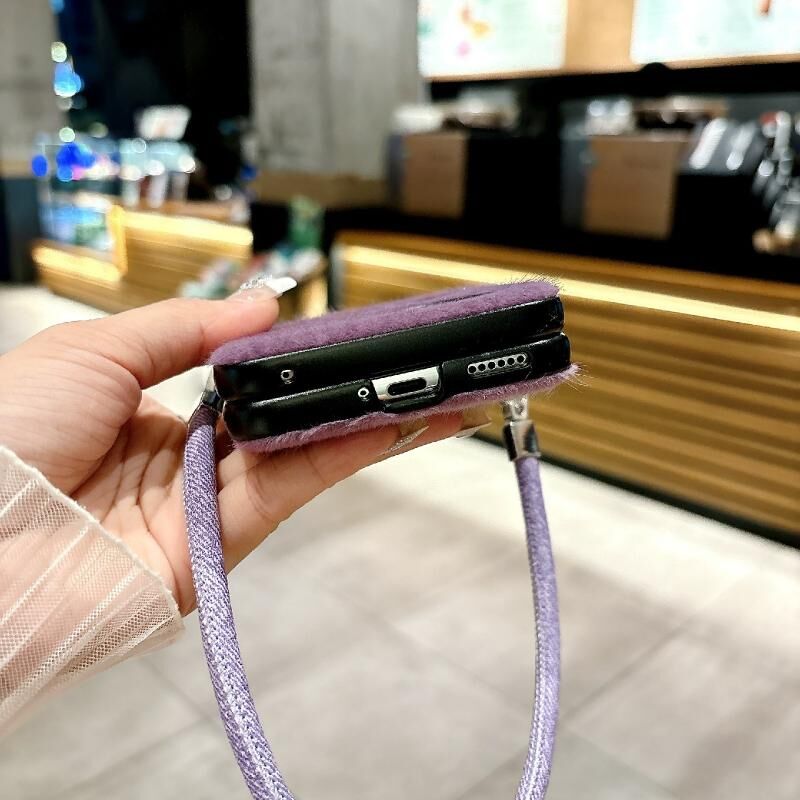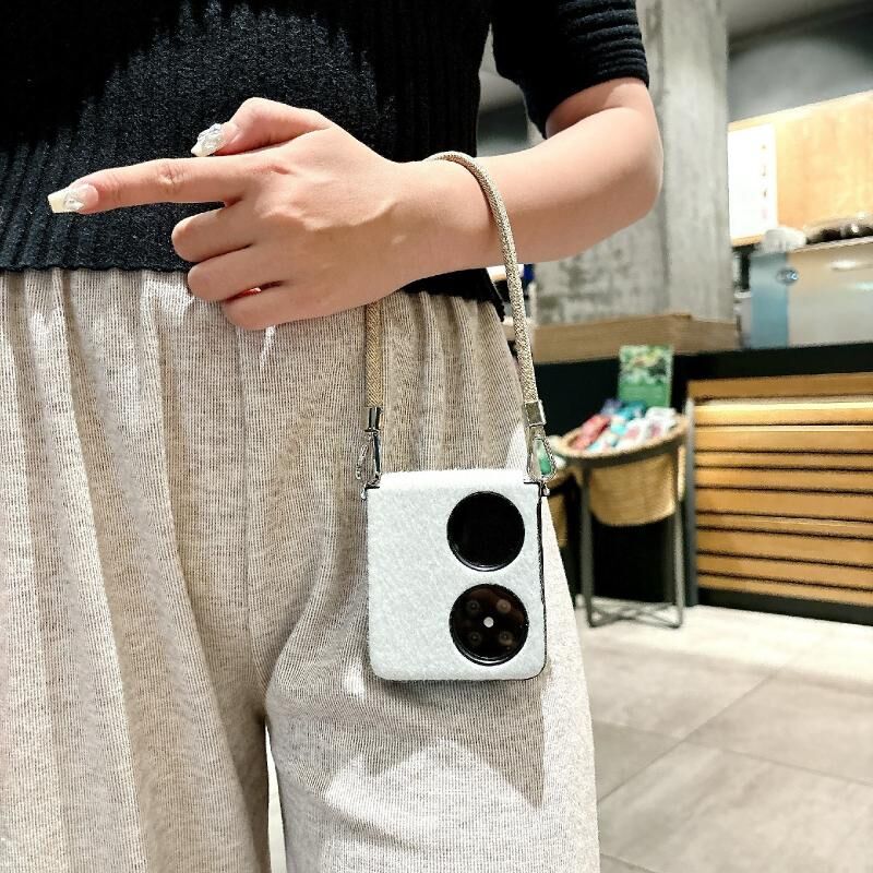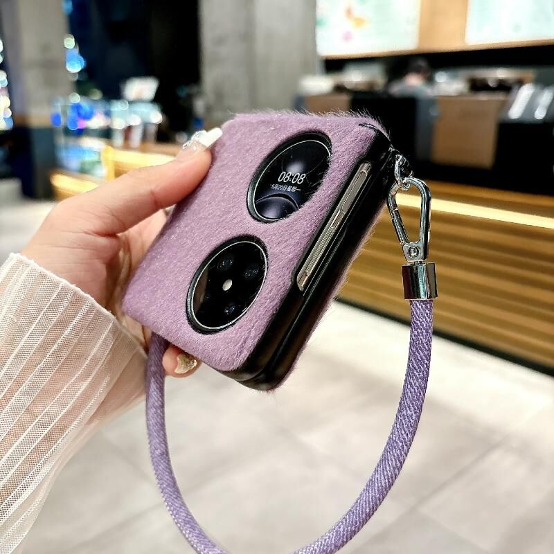 Για Huawei P50 Pocket Άνετη σύντομη βελούδινη θήκη τηλεφώνου πλήρους κάλυψης με λουράκι καρπού (λευκό)