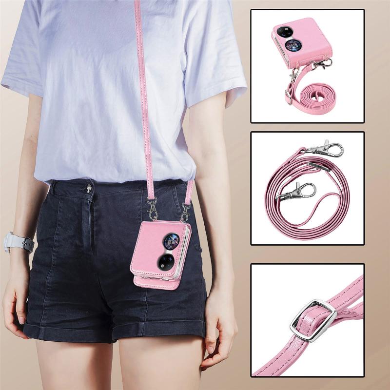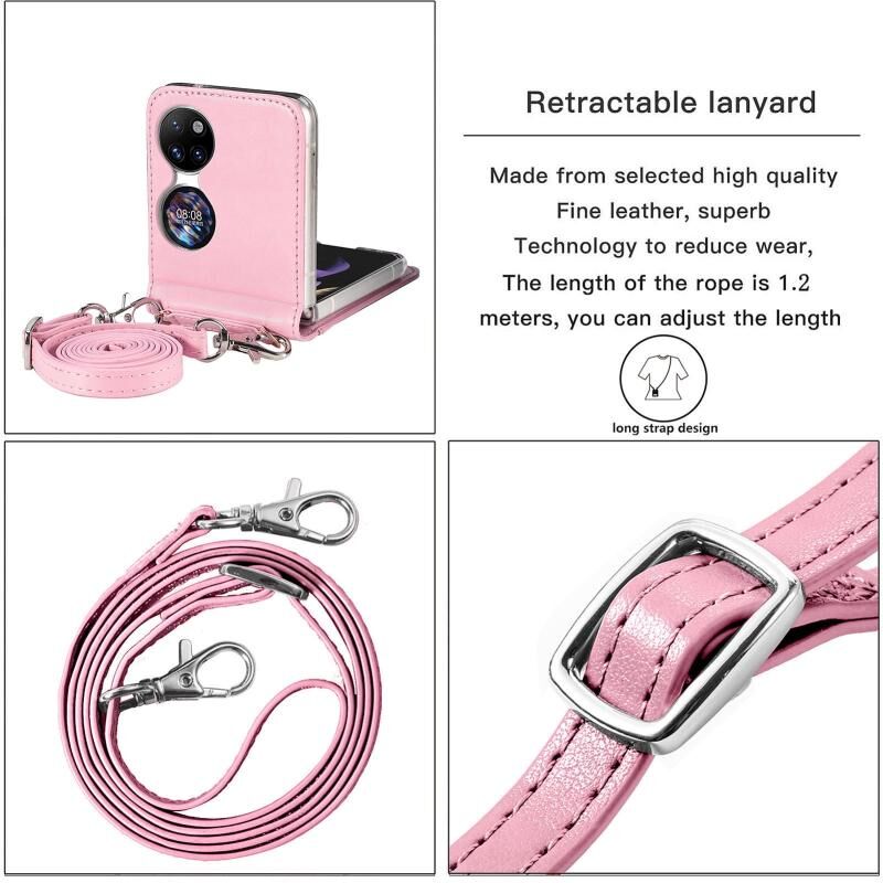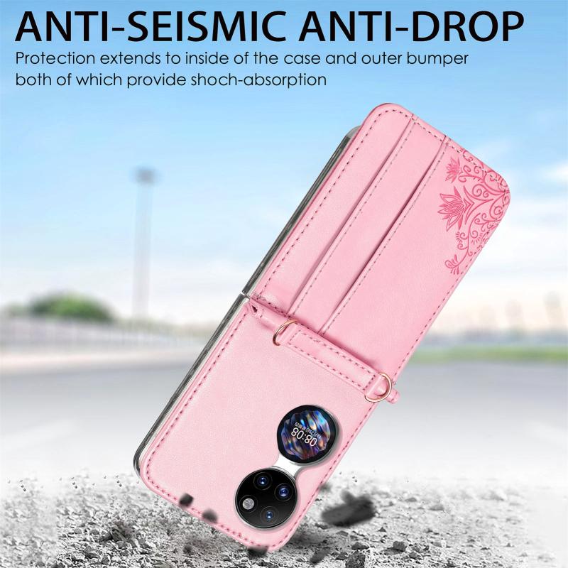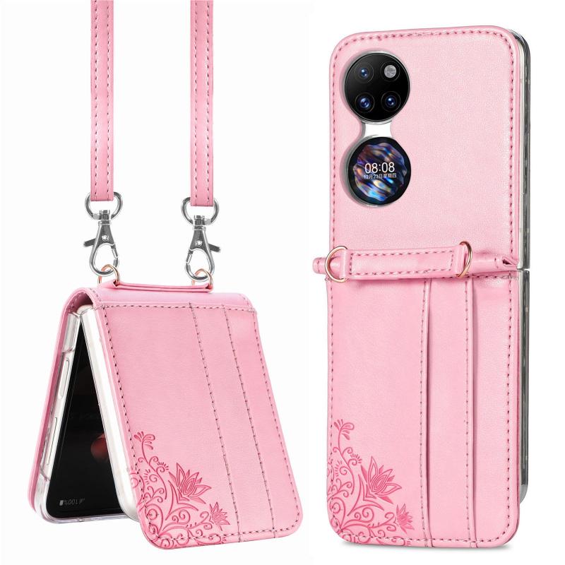 For Huawei P50 Pocket Diagonal Embossed Card Folding Phone Case(Pink)