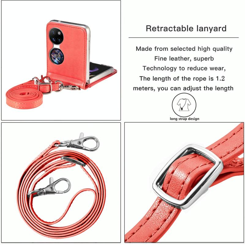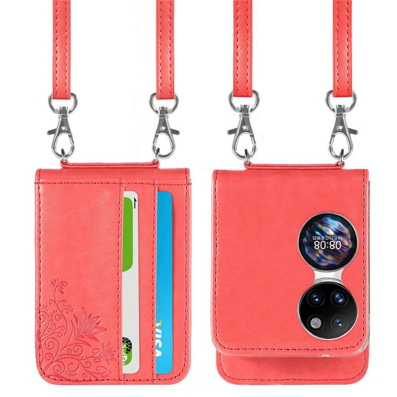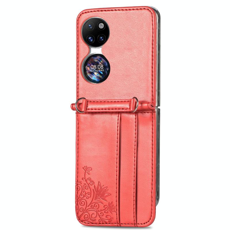 For Huawei P50 Pocket Diagonal Embossed Card Folding Phone Case(Red)