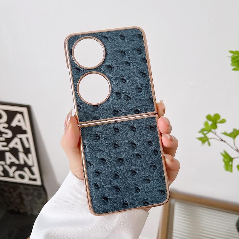 Θήκη τηλεφώνου γνήσιου δέρματος στρουθοκάμπου με νανοεπίστρωση για Huawei P50 Pocket (Μπλε)