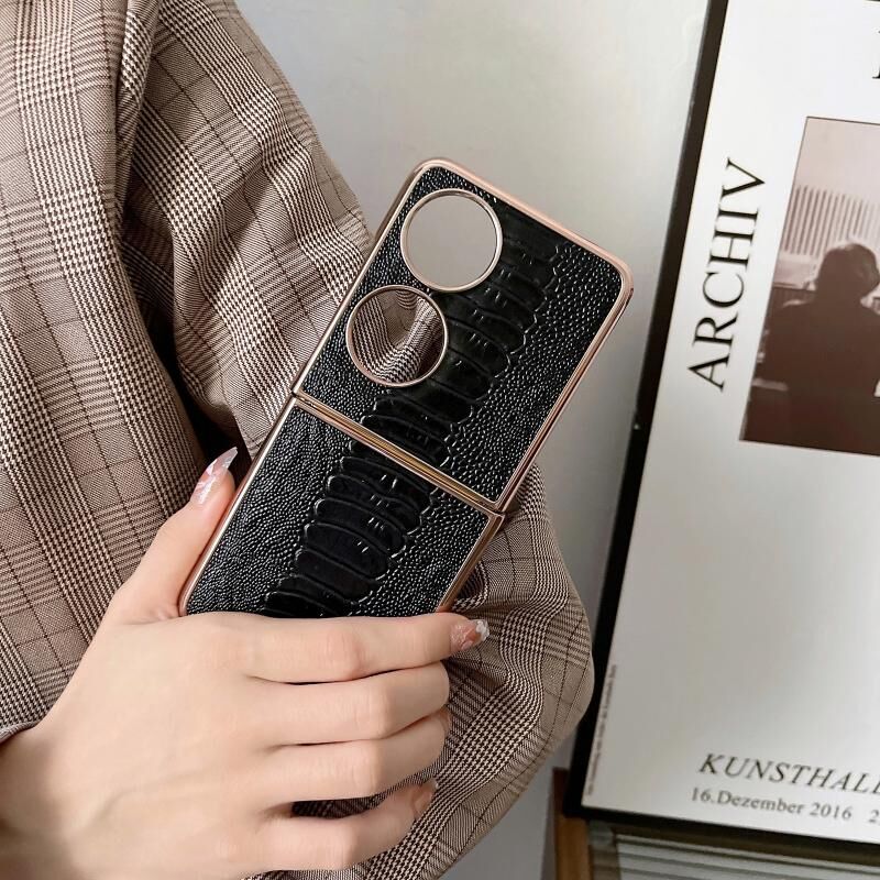 Θήκη τηλεφώνου γνήσιου δέρματος Weilai Series Nano Plating για Huawei P50 Pocket (Μαύρο)