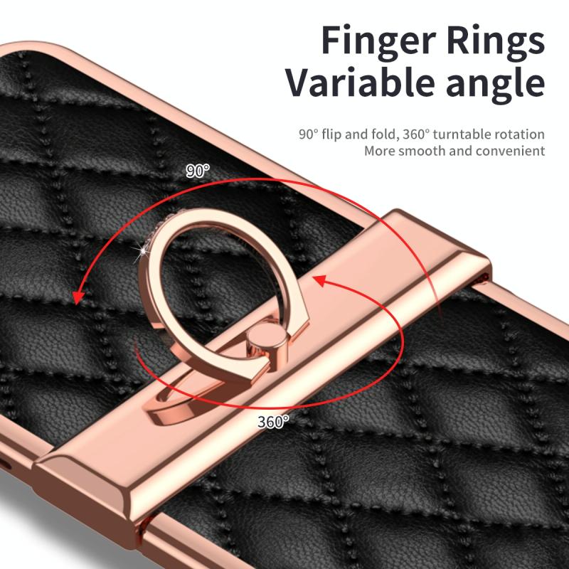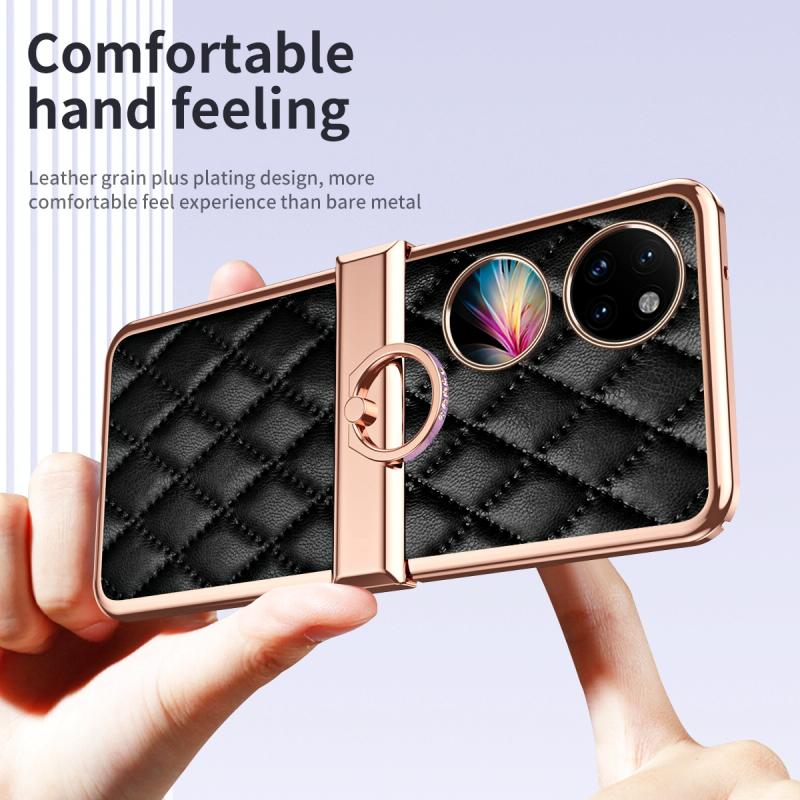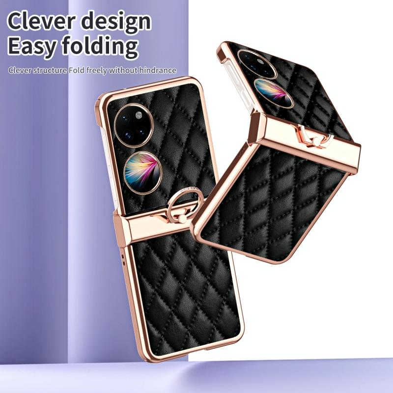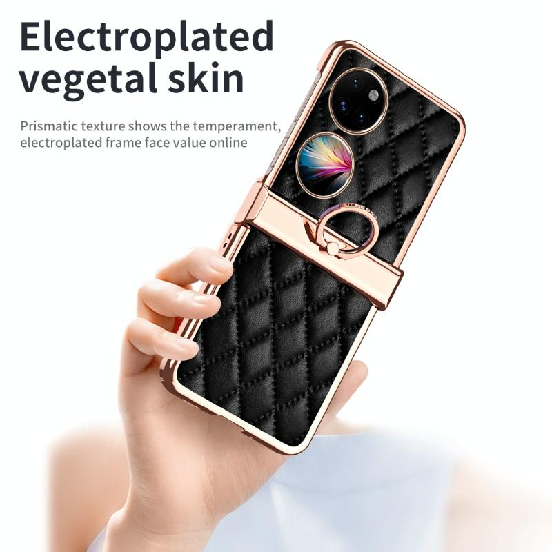 For Huawei P50 Pocket Grid Leather Pattern Electroplating Frame Folding Phone Case(Black)