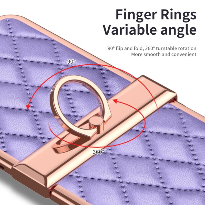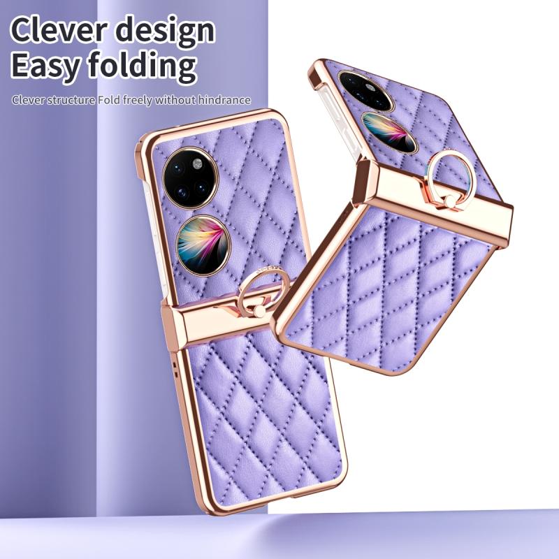 For Huawei P50 Pocket Grid Leather Pattern Electroplating Frame Folding Phone Case(Purple)