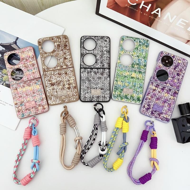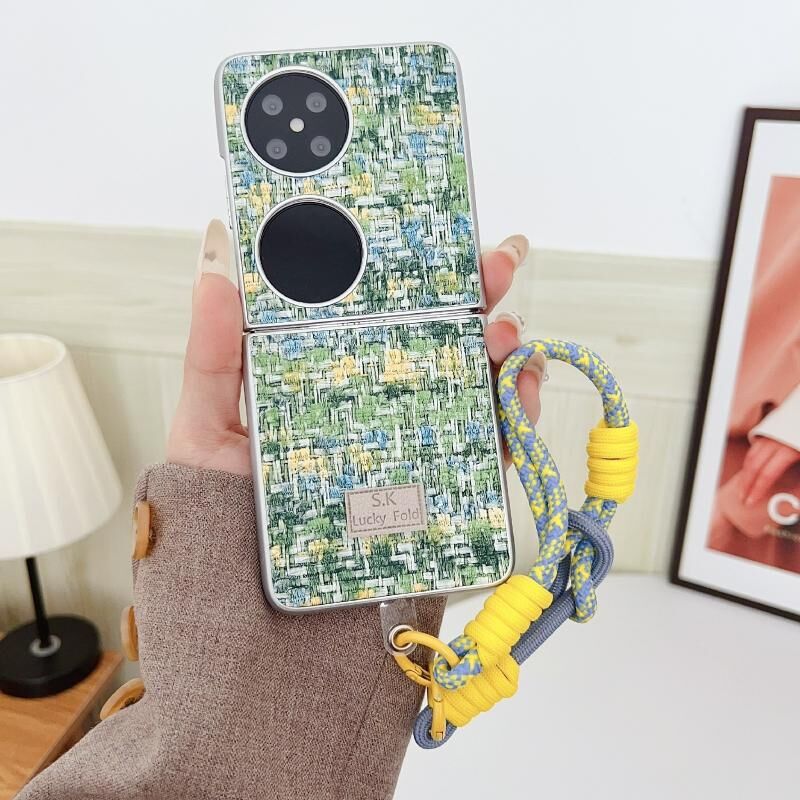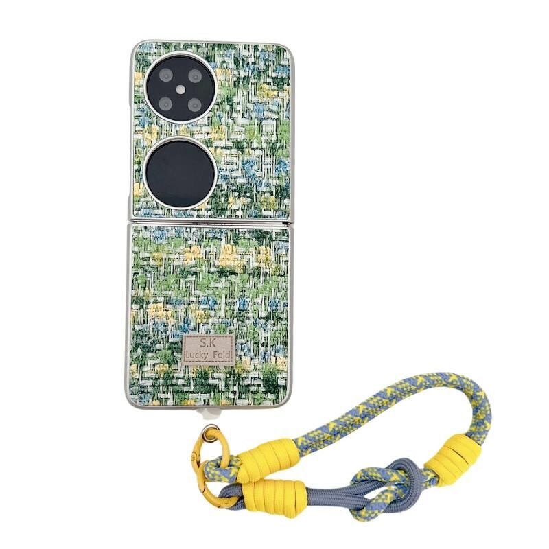 Για Huawei P50 Pocket ψευδαίσθηση χρώμα ύφανση Υφή τηλέφωνο υπόθεση με το χρώμα λουράκι (πράσινο)
