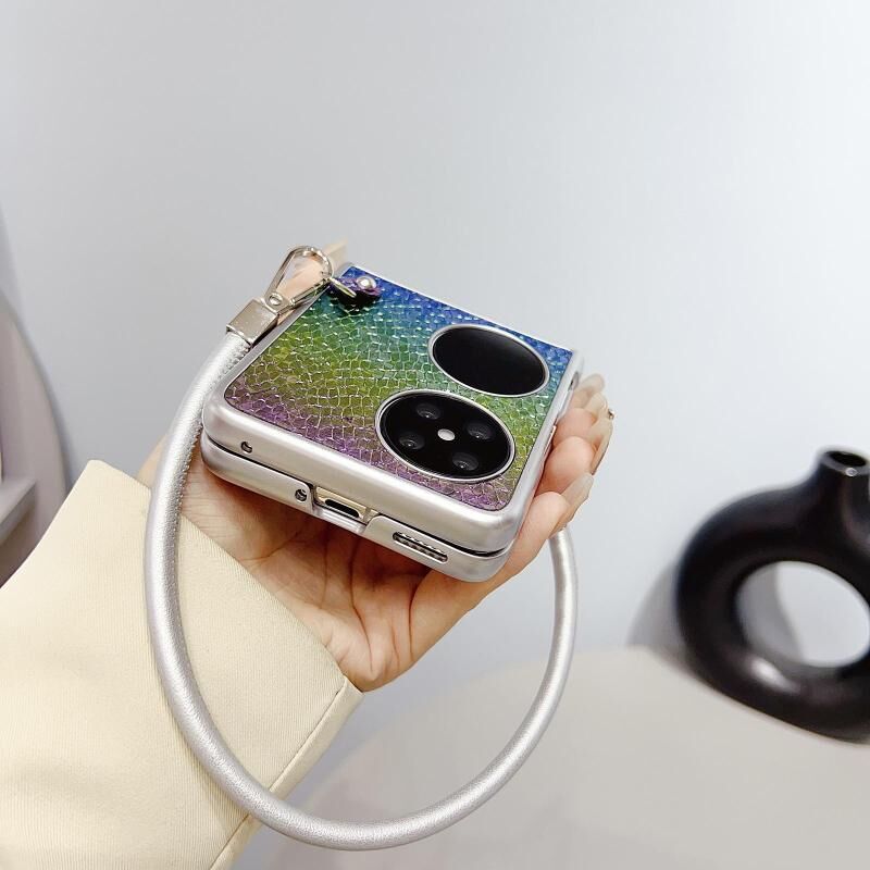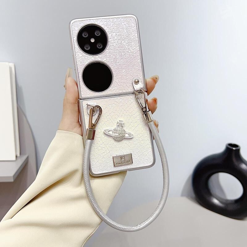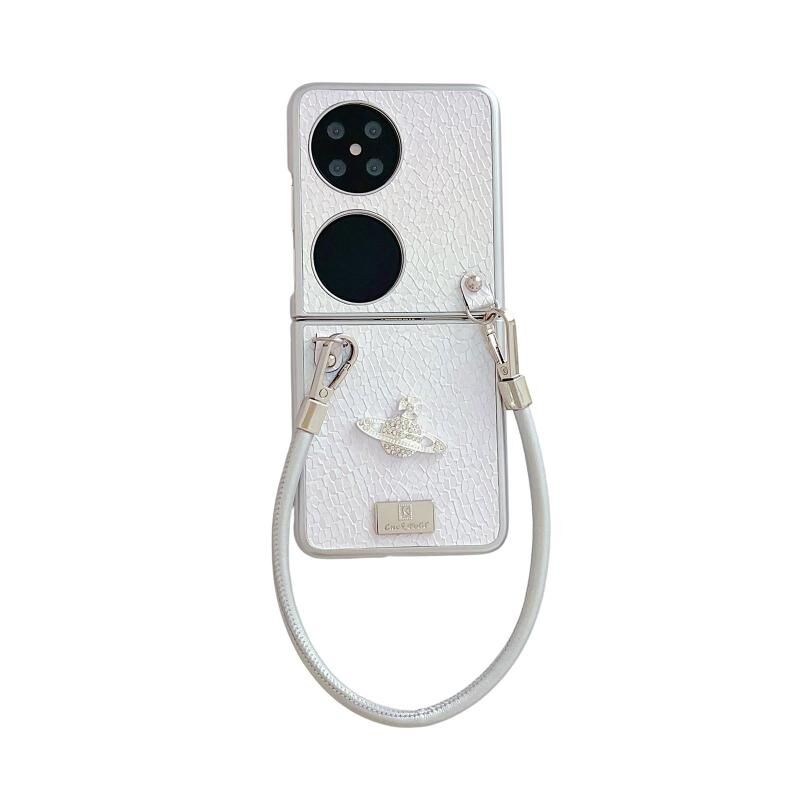 Θήκη κινητού τηλεφώνου πλήρους κάλυψης με σχέδιο Kirin για Huawei P50 Pocket με λουρί καρπού (Λευκό)