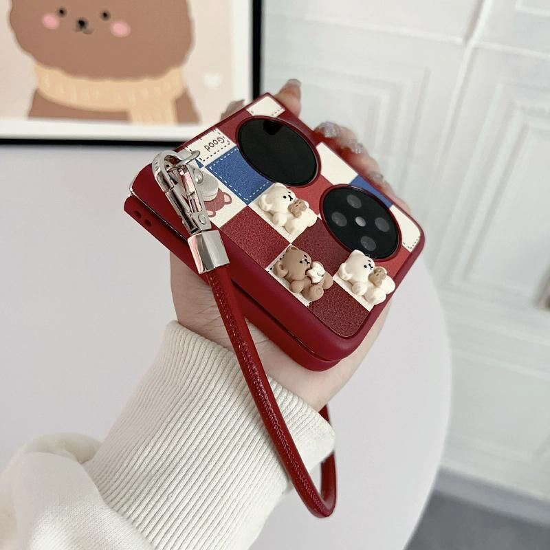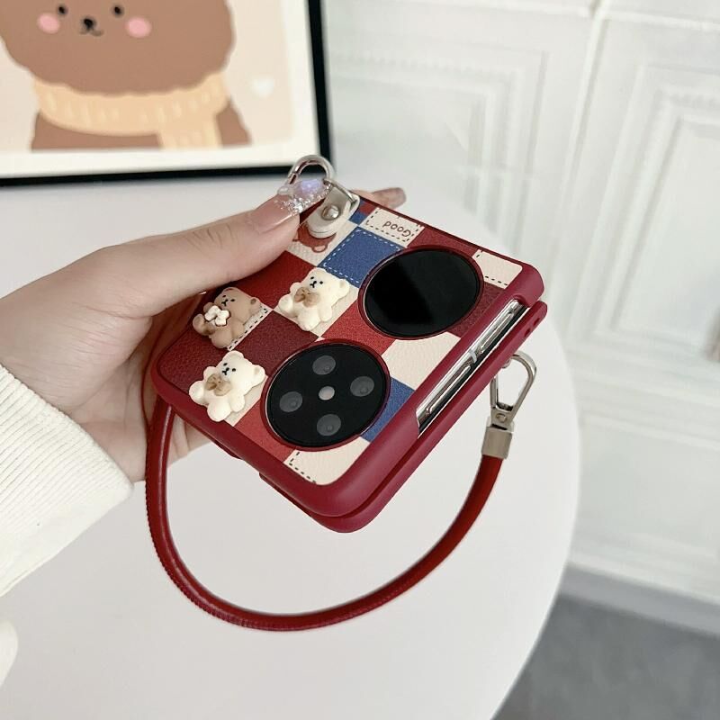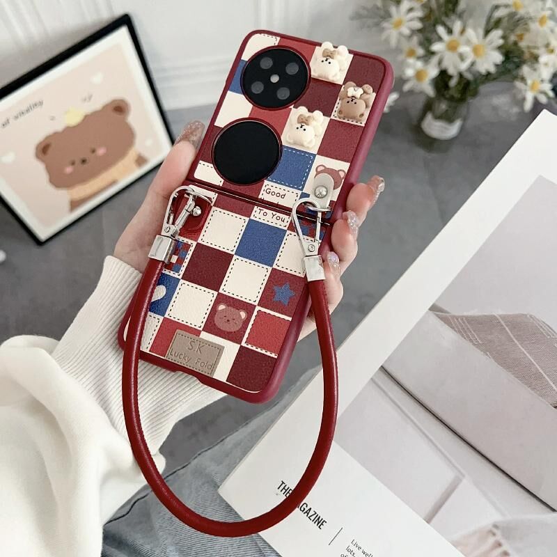 Θήκη κινητού Huawei P50 Pocket με σχέδιο Λαγουδάκι Lattice, πλήρης κάλυψη, με λουρί καρπού (Κόκκινο)