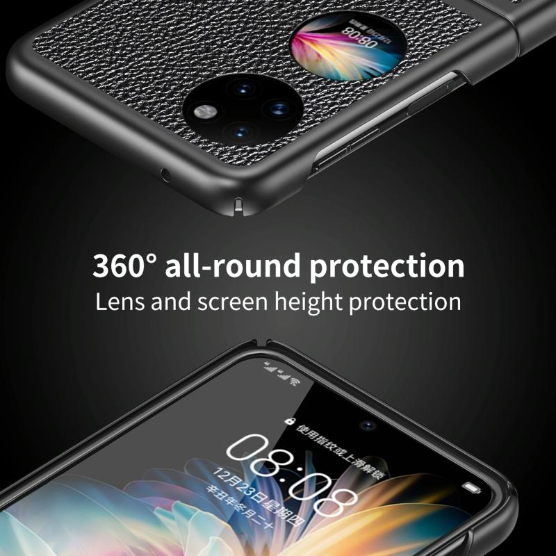Θήκη κινητού τηλεφώνου αντικραδασμική για Huawei P50 Pocket με υφή Litchi (Μαύρο)