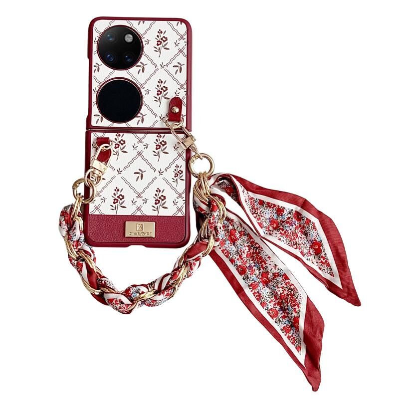 Θήκη τηλεφώνου Huawei P50 Pocket με σχέδιο Λουλουδιών της Τύχης, από TPU με λουρί (Κόκκινο)