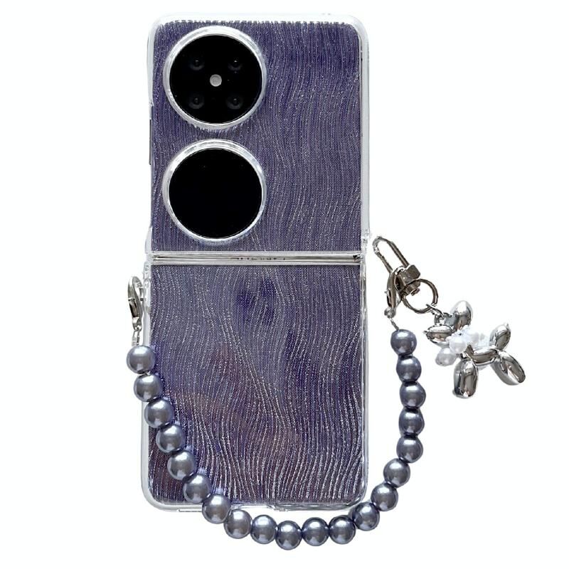 Για Huawei P50 Pocket PC Side Buckle + κυματισμούς Glitter χαρτί πλήρους κάλυψης τηλέφωνο υπόθεση με βραχιόλι (Μωβ)