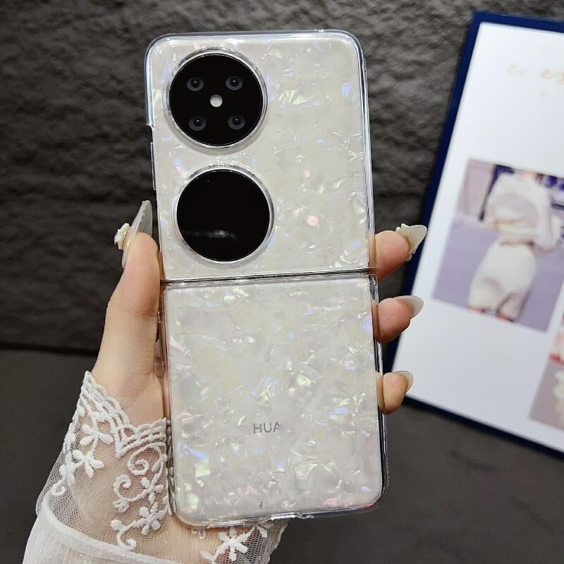 Για Huawei P50 Pocket Pearlescent Shell Υφή τηλέφωνο υπόθεση (μπεζ)