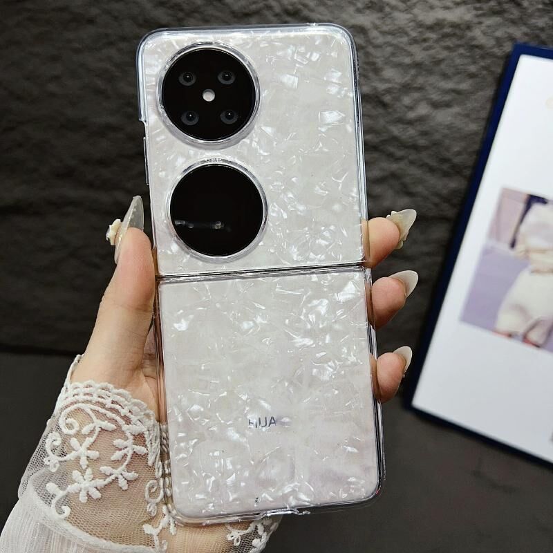 Για Huawei P50 Pocket Pearlescent Shell Υφή τηλέφωνο υπόθεση (λευκό)