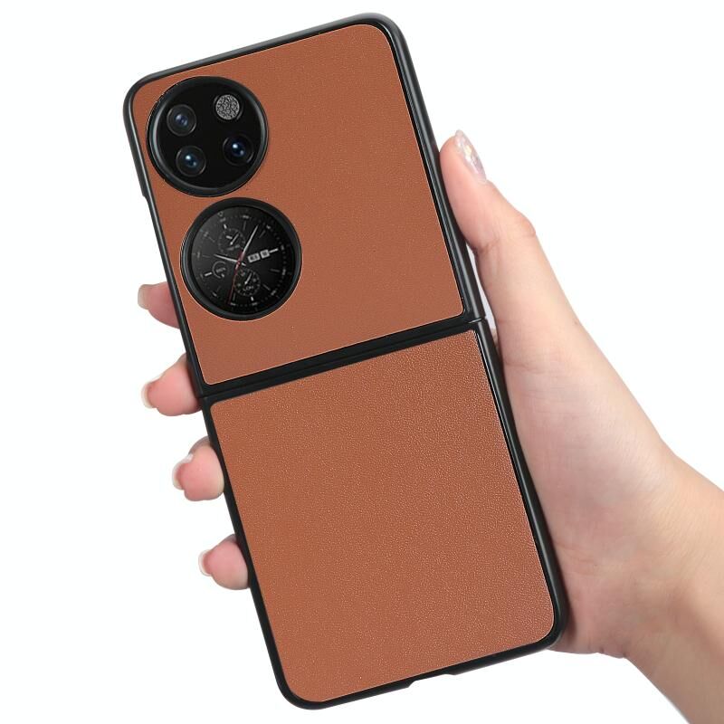 Για Huawei P50 Pocket Απλό δέρμα Litchi Υφή τηλέφωνο υπόθεση (καφέ)