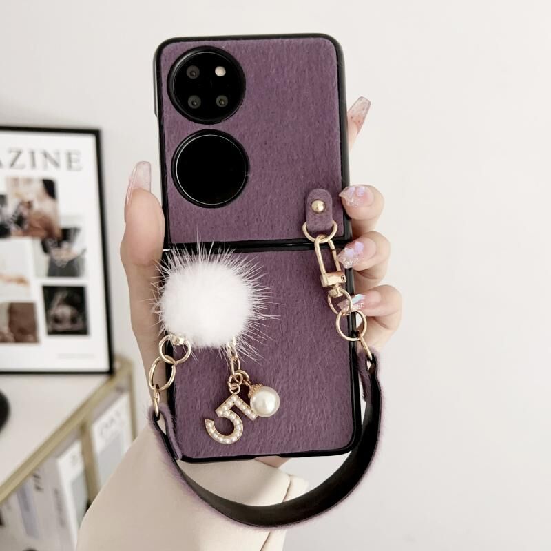 Για το Huawei P50 Pocket Plush Full Coverage Phone Case με λουράκι (μωβ)