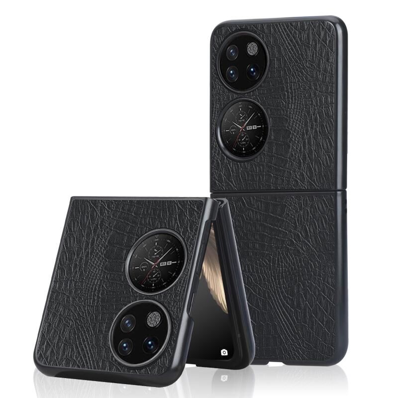 Θήκη για Huawei P50 Pocket ανθεκτική στις κρούσεις με υφή κροκόδειλου, από PC + PU (Μαύρο)