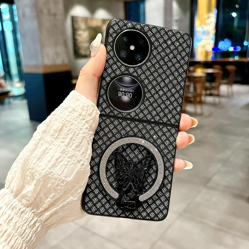 Θήκη τηλεφώνου Huawei P50 Pocket Sparkling Diamond Rhombus από πολυανθρακικό (PC) με βάση στήριξης (Μαύρο)